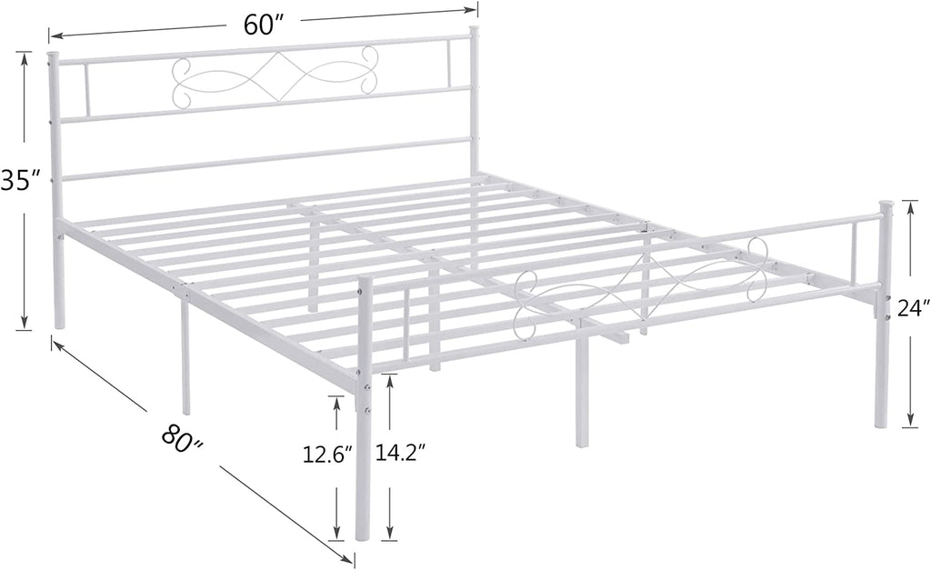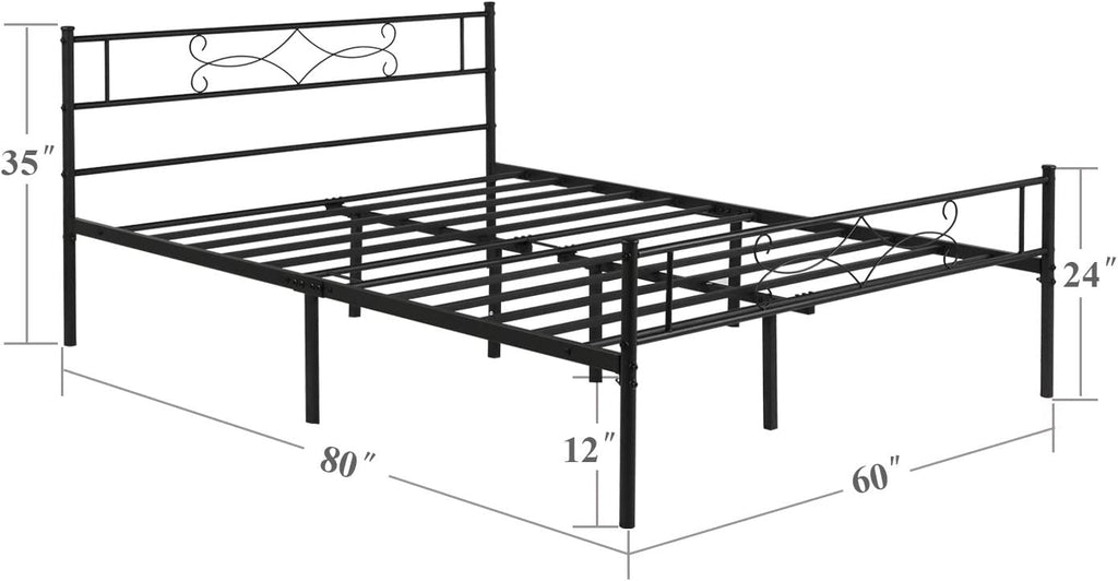 • 【Studry and stable】VECELO metal bed frame is constructed of sturdy metal slats, side rails and 9 solid legs which could hold up to 300lbs.