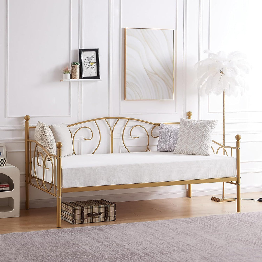 • Twin size metal daybed frame structured with heavy-duty metal ensures durability and stability. Strong mattress foundation and no box spring needed. No mattress
