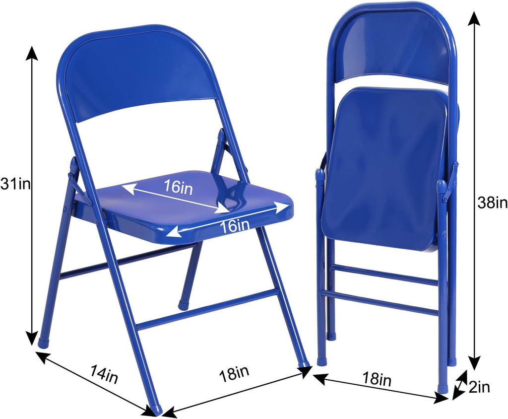 VECELO Metal Frame Steel Folding Mounted Chairs with Triple Braced & Double Hinged Back Set of 4