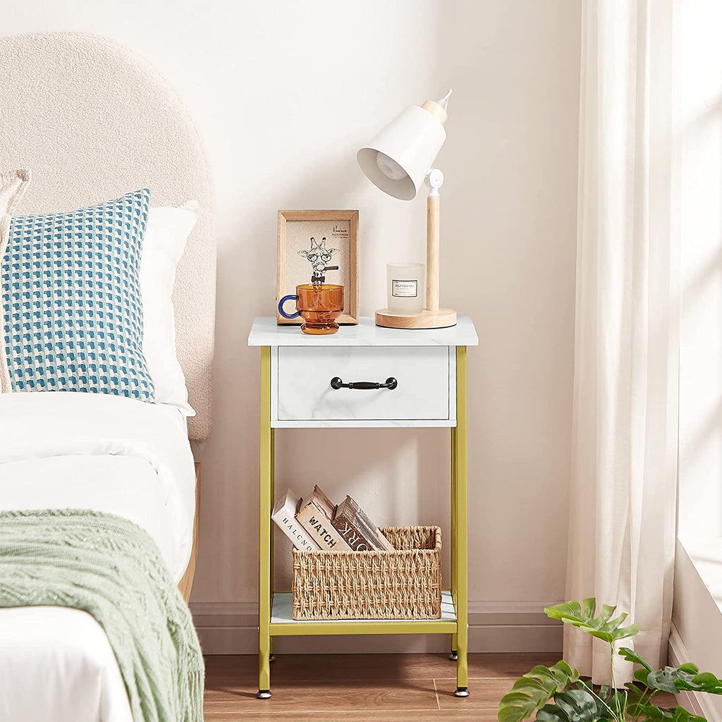 • 【3 Tiers Storage Space】The top: you can put lamps, books, coffee on it; The second layer is a drawer, you can store some private things. On the bottom layer are open storage shelves, which is a good idea for some big stuff.