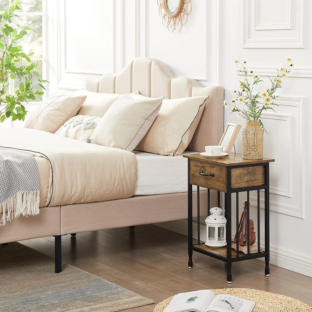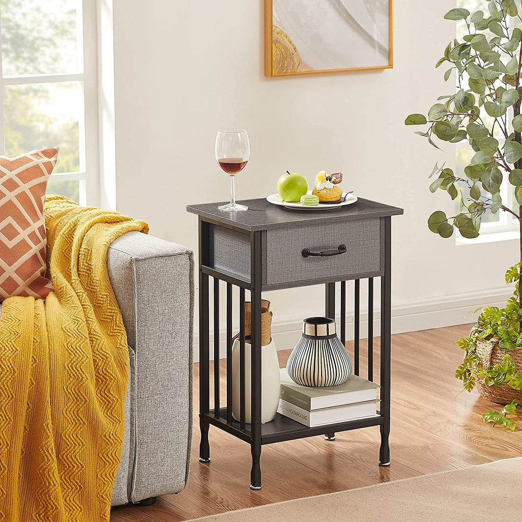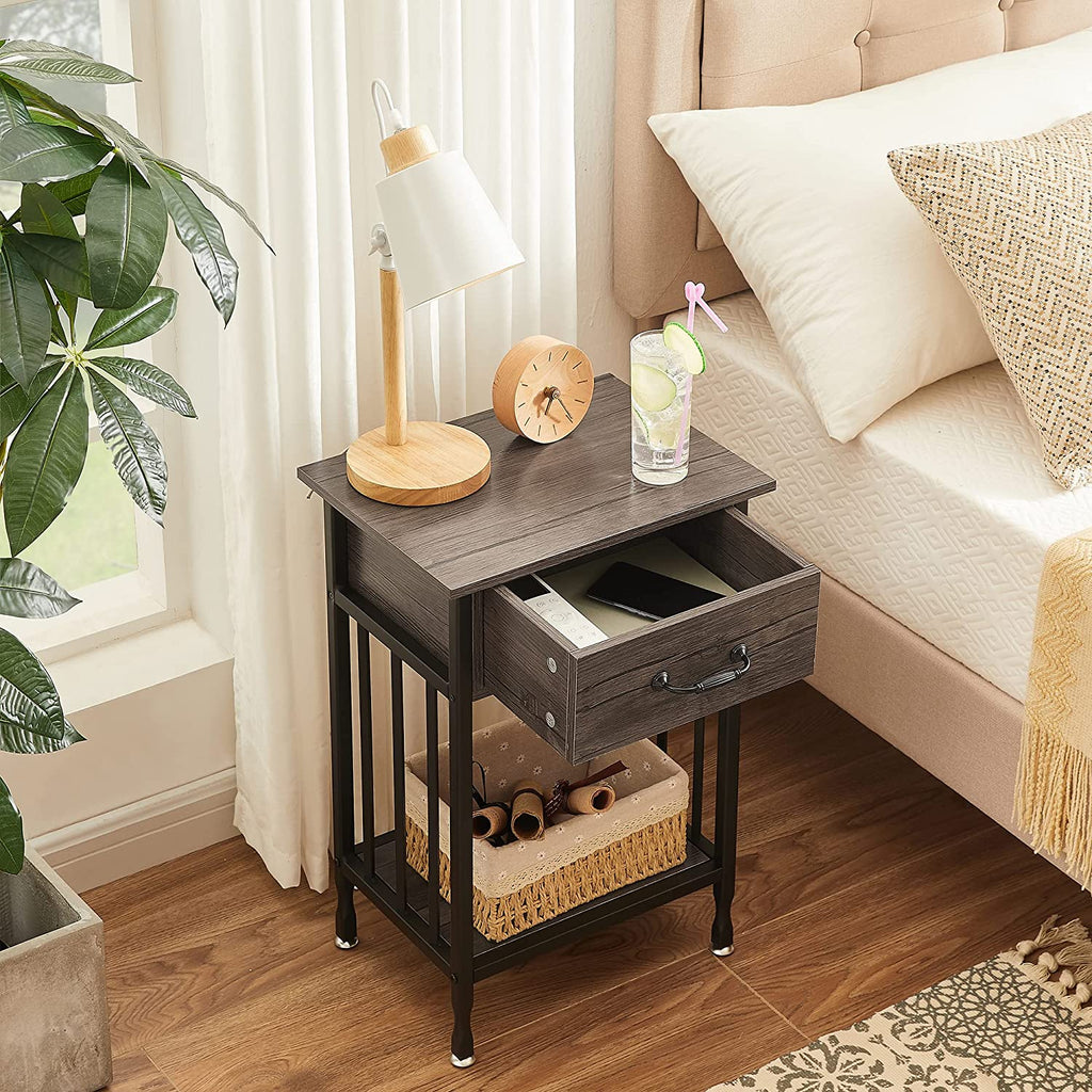 VECELO Industrial End Table,Nightstand with Drawer and Storage Shelf