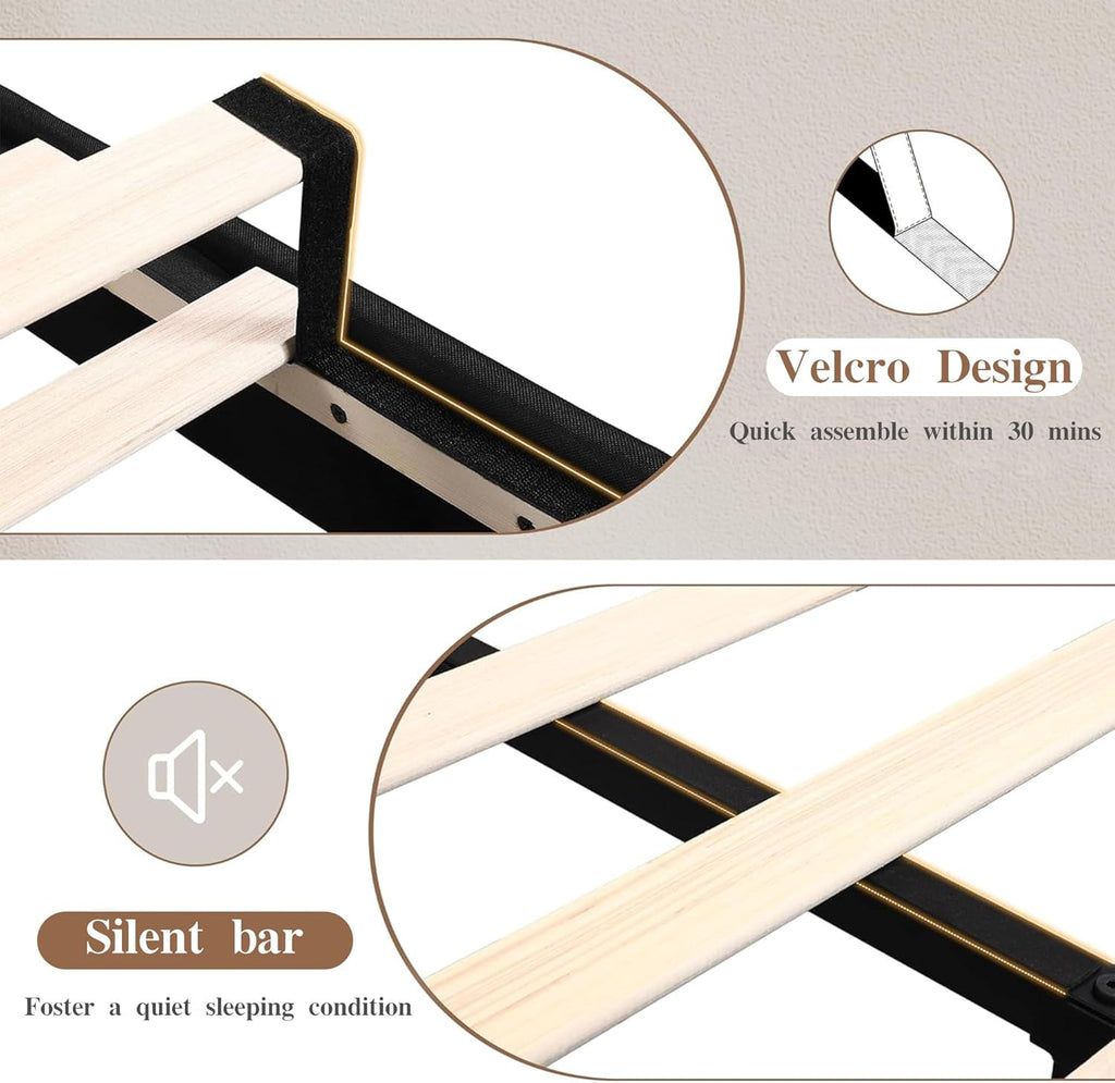 • [Noise-Free & Easy Assembly]: EVA strips between the slats and metal frame provide cushioning resulting in noise-free use. No squeak and mattresses won't slip away. Providing you with a quiet sleeping night. All pieces come with sequence numbers that can easily be done by one person within 30mins.