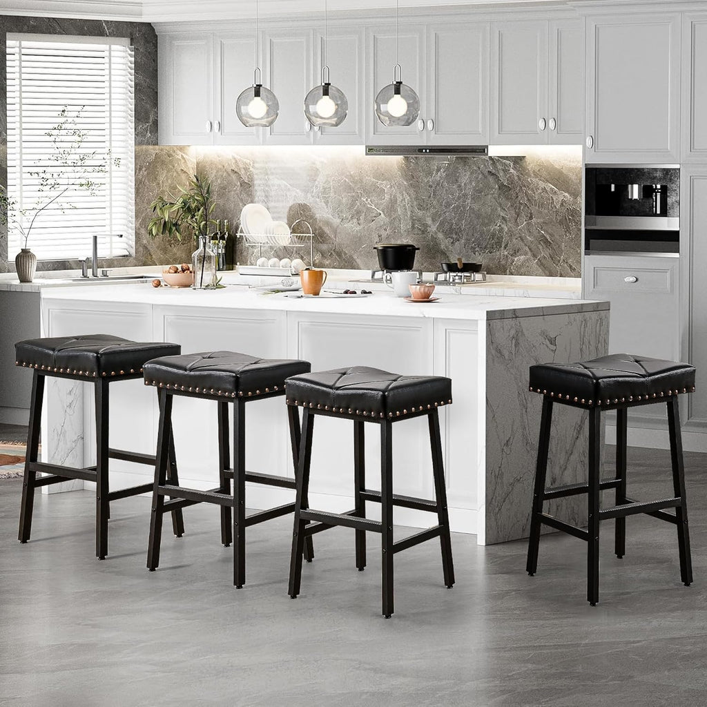 • Comfortable Sitting: These counter stools feature an ergonomic saddle seat and footrests, the seat is upholstered in durable PU material and filled with 3.3” high-density foam for exceptional support and comfort. The bar stool effectively alleviates fatigue from prolonged sitting.