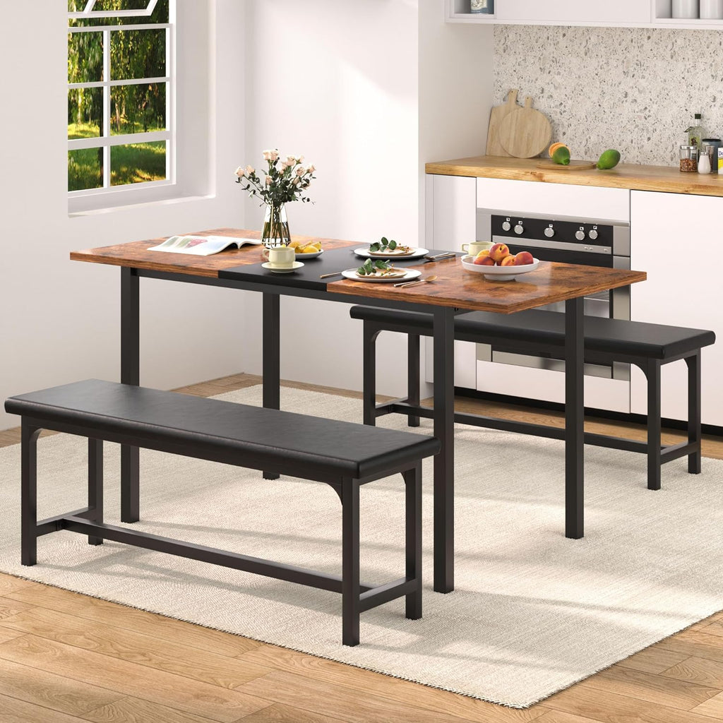 VECELO 3-Piece 63" Extendable Kitchen Table with Benches