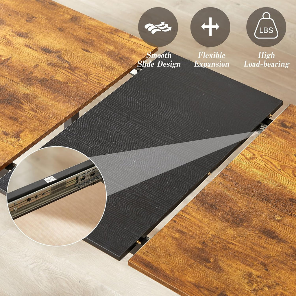 • 【Stylish Design】The expandable dining set features a simple design with woodgrain tabletop and black frame, versatile for various settings. This expandable dining table benches serve as a functional addition to kitchen, dining room, living room, office, and study room.