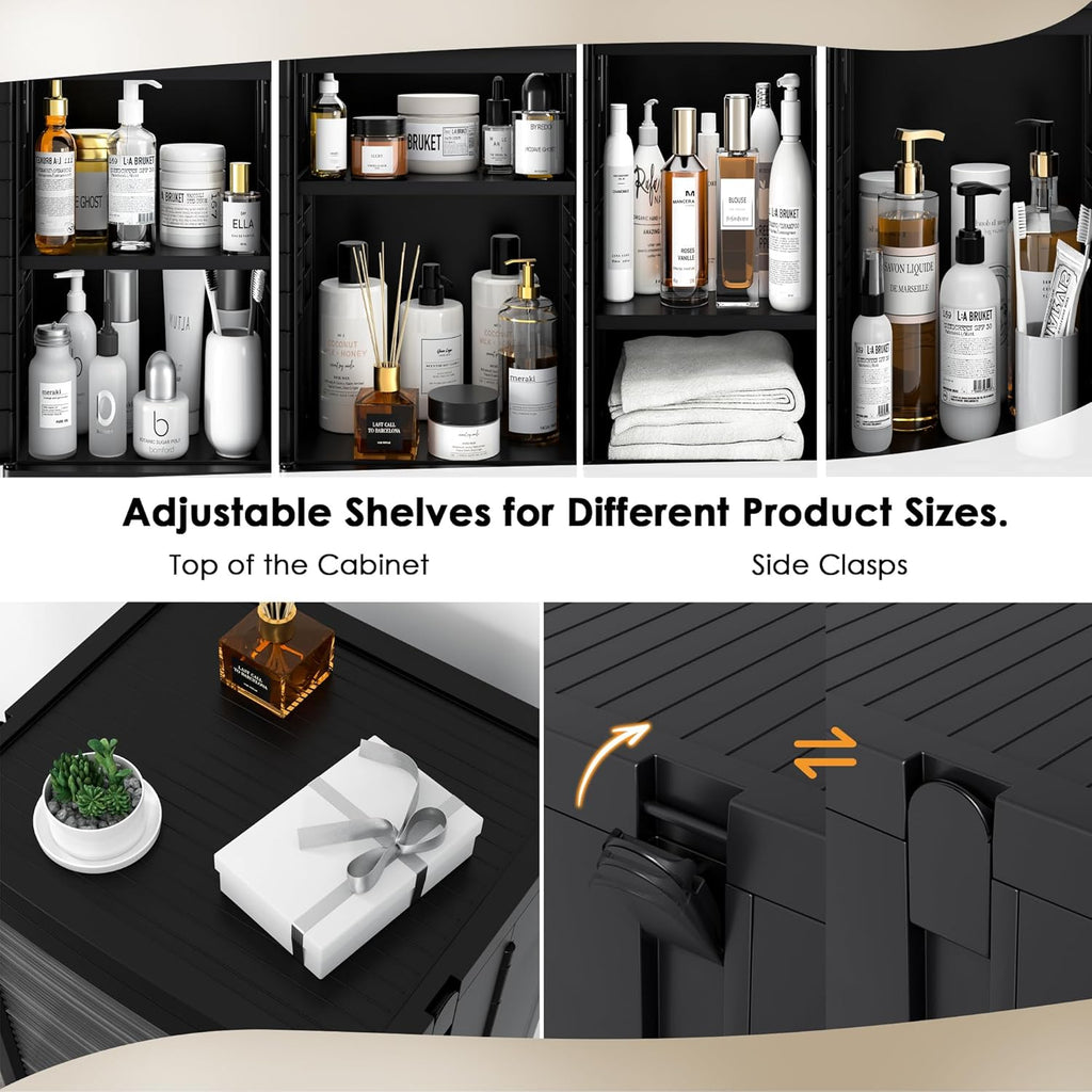 • Waterproof & Dustproof: This plastic storage cabinet features adhesive doors with tough closing, making it waterproof and protecting your items from getting wet in the bathroom. It also keeps dust out when used on the balcony or in the hallway, ensuring your belongings stay clean.