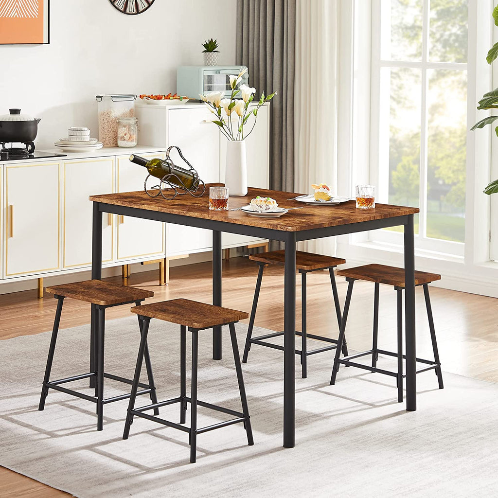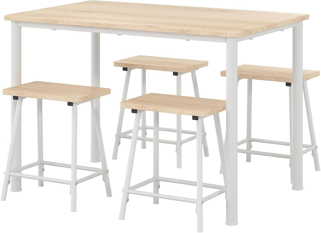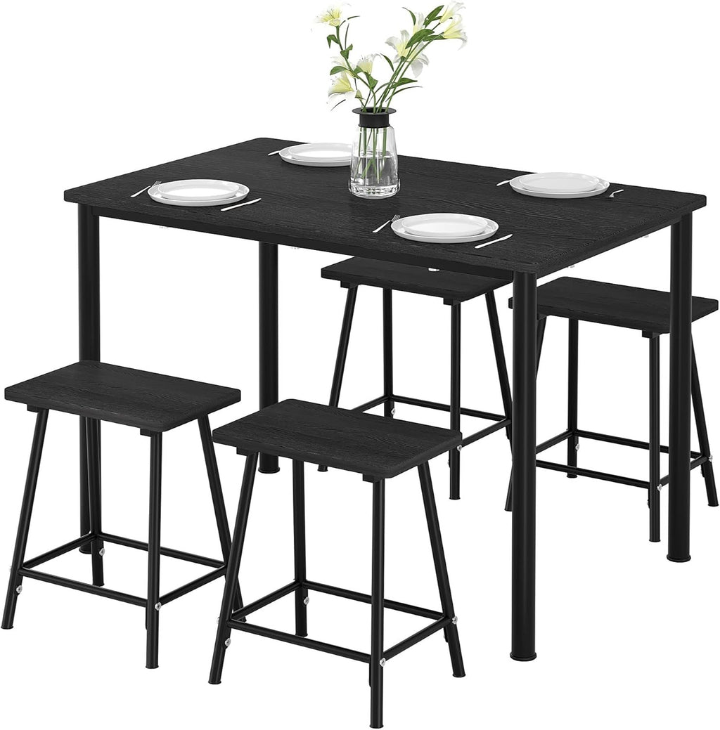 • [STURDY & STABLE CONSTRUCTION]--Our 5 Piece Dining Table Set is made of high-quality wood, well made and durable. Table legs and stools are made of heavy-duty steel, ensuring its sturdiness and durability for a long lifespan.