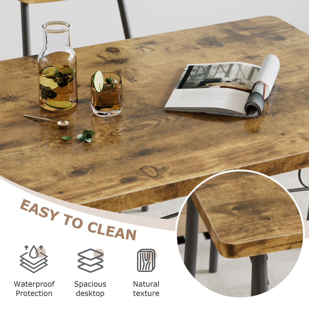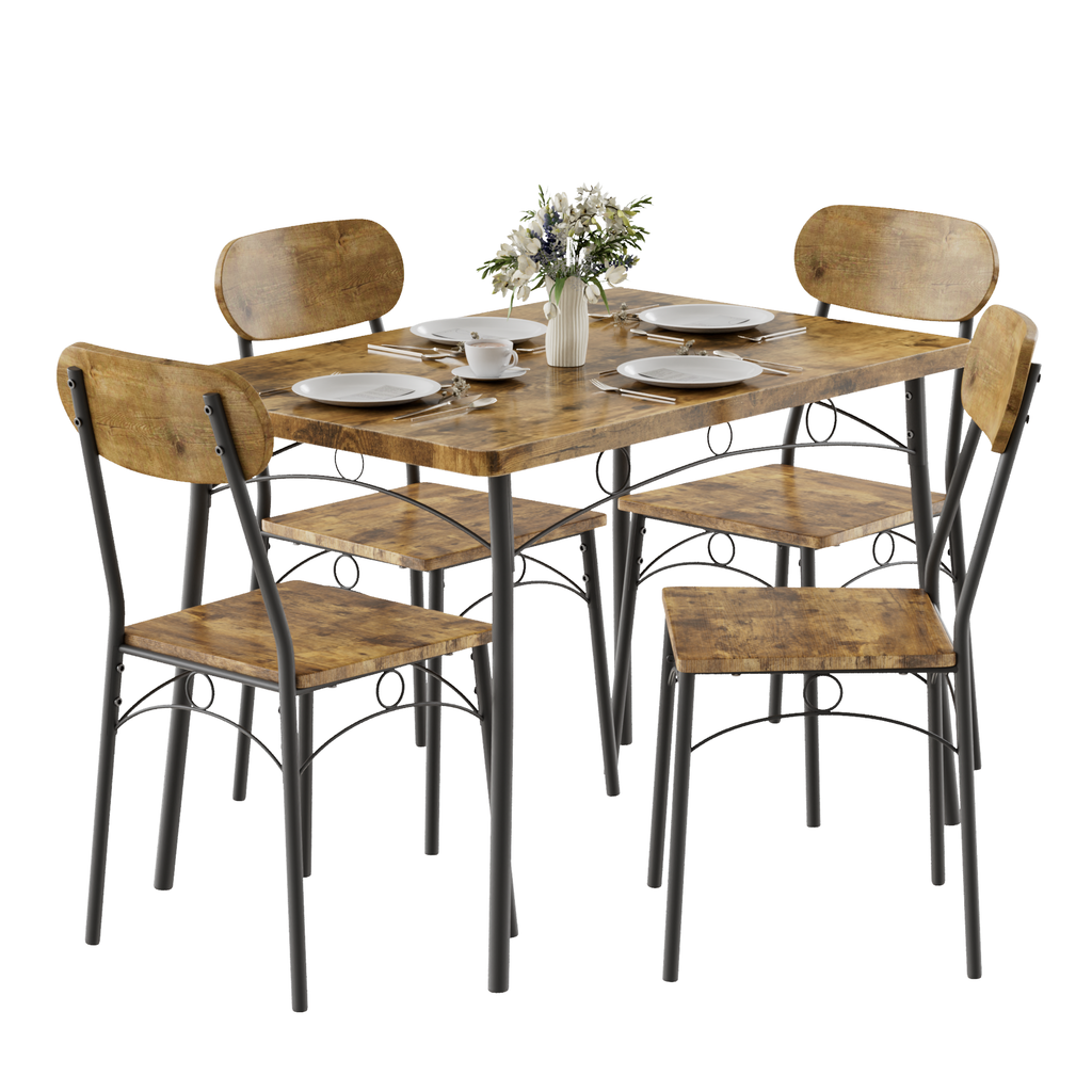 VECELO Farmhouse Style 5 Piece Dining Table Set Metal and Wood Rectangular Table with 4 Chairs