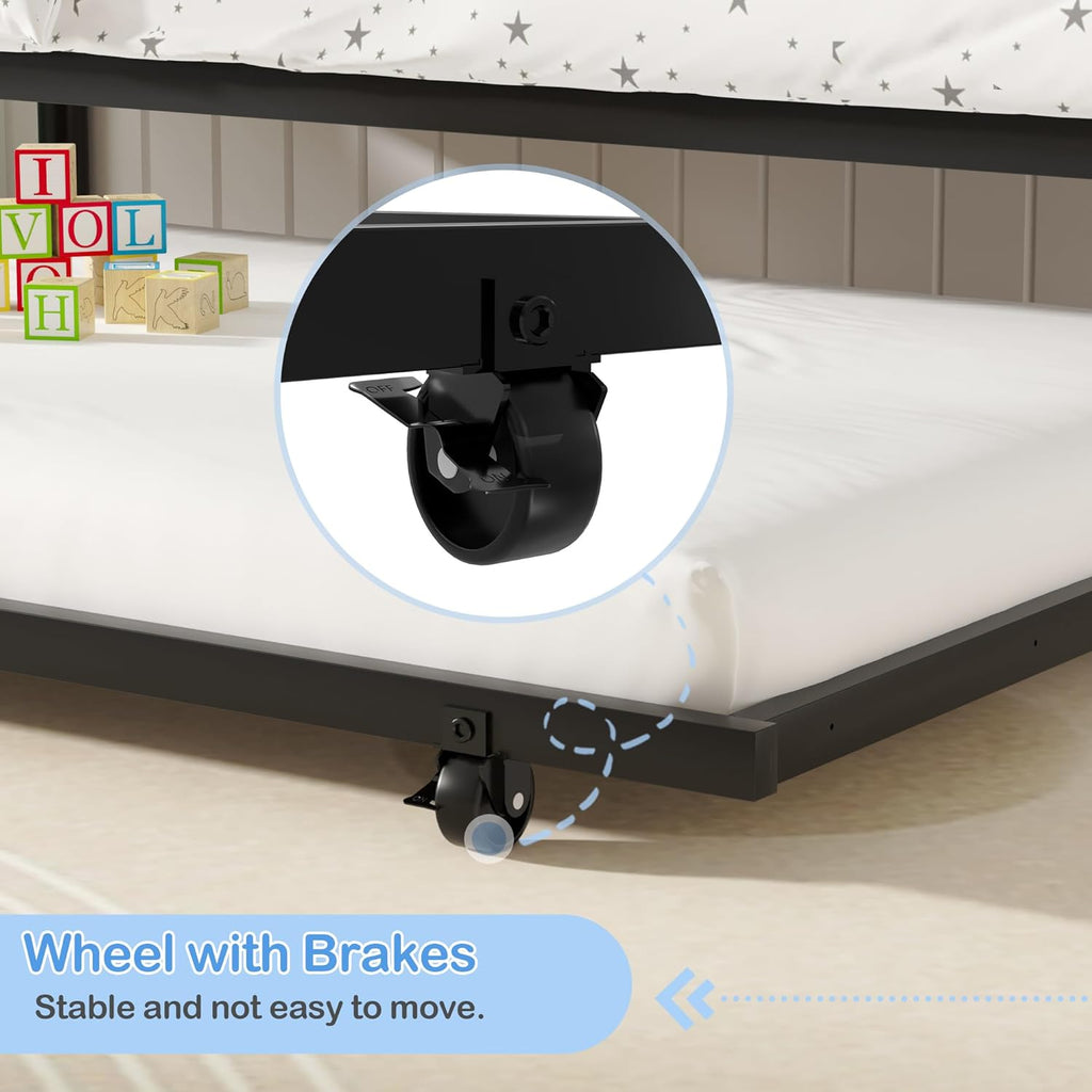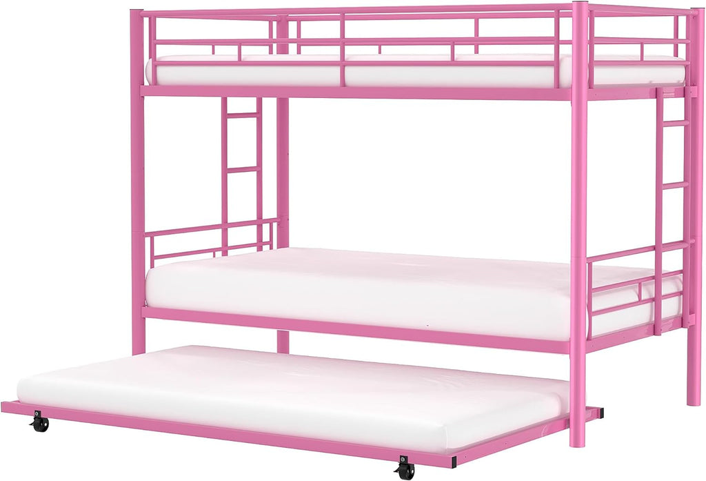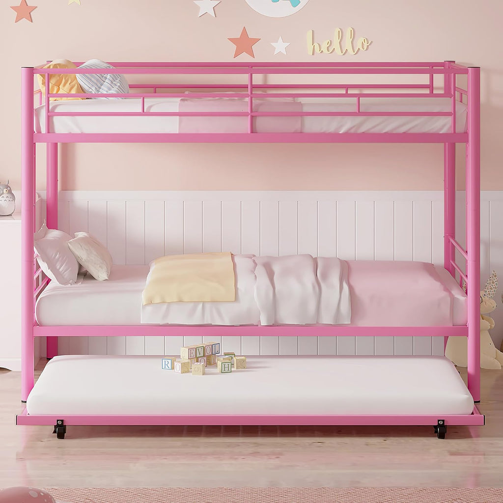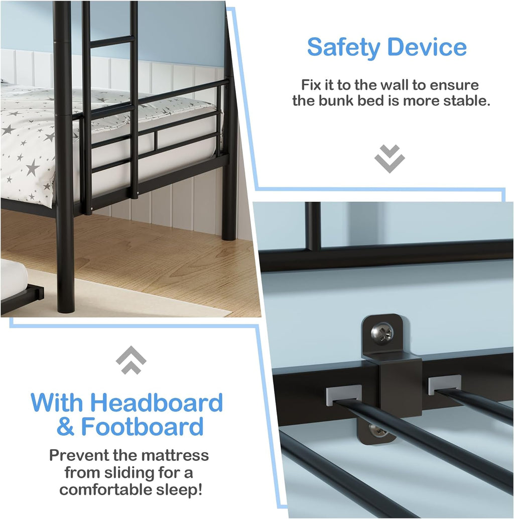 • [Sturdy & Stable] - Crafted from heavy-duty metal, this bunk bed with trundle is designed to provide long-lasting durability. With its 20 metal slats, this bunk bed twin over twin offers reliable support, guaranteeing a solid and sturdy structure. Extra ANTI-TIPPING accessories enhance stability and eliminate excess wobbling.