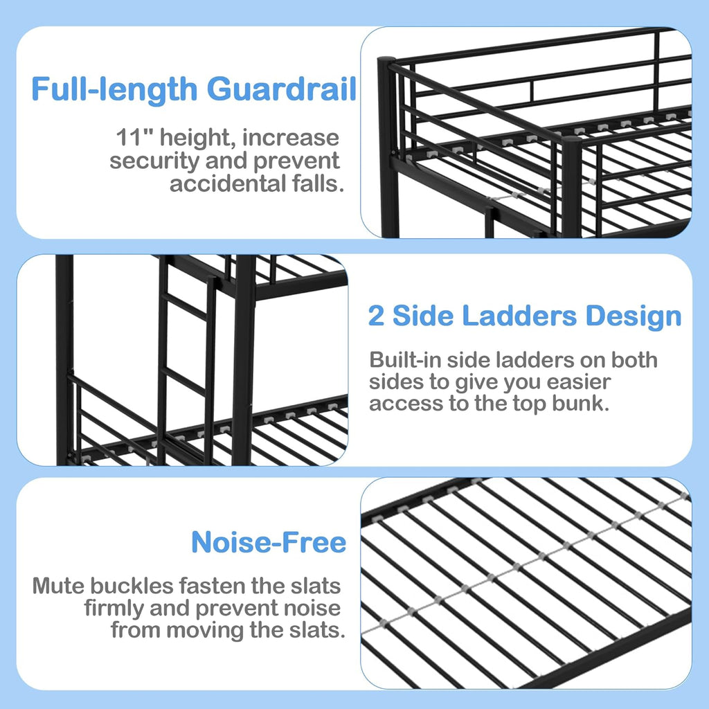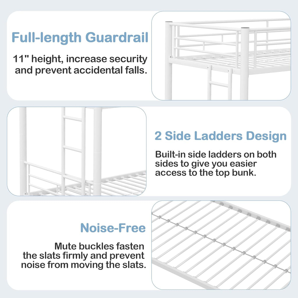 • [Safety Bunk Beds] - The upper bed is surrounded by 11" height full-length guardrails, ensuring security throughout the night, preventing accidental falls, and providing a safe and cozy environment for you. We've included two side ladders in the design to ensure easy and convenient access to the top bunk.
