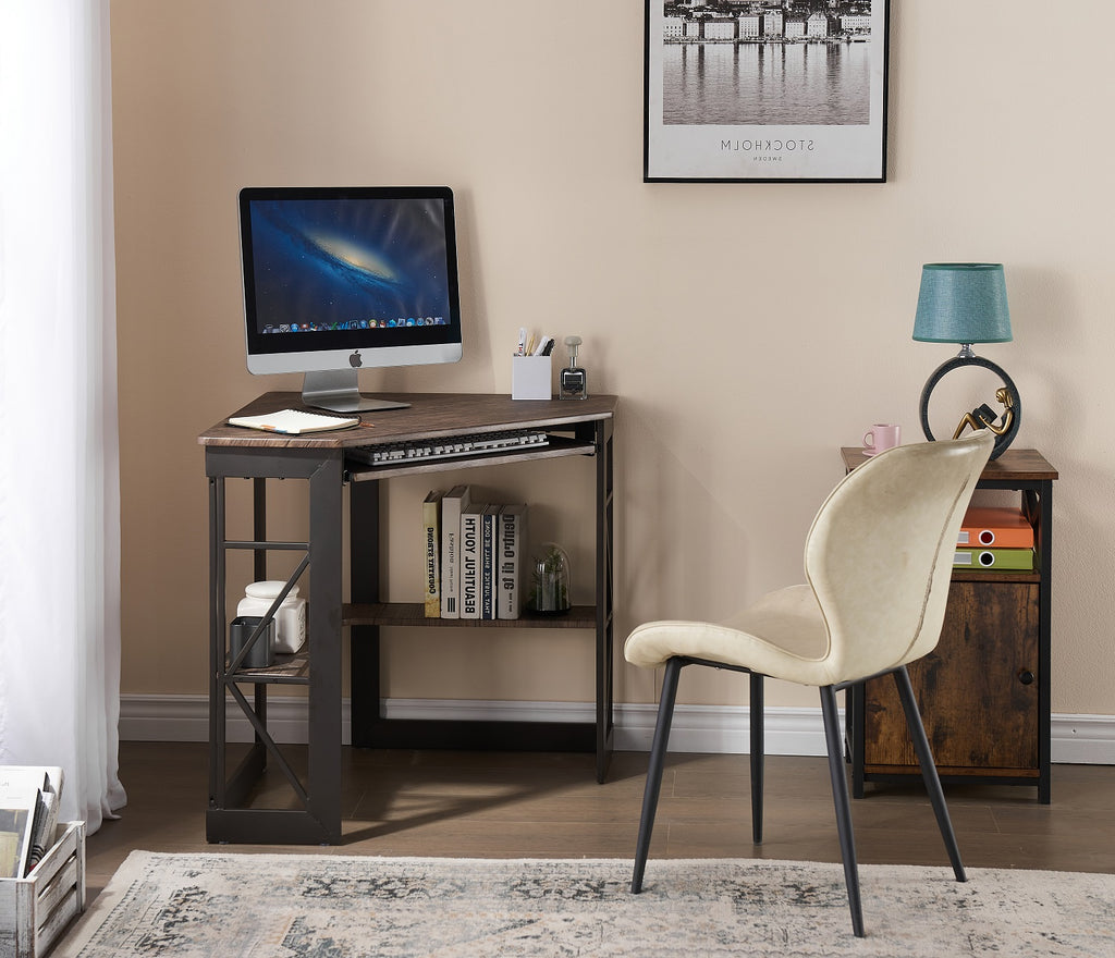 • 【Keyboard Tray & Storage Shelves】Corner desk with keyboard tray and two open shelves on the side provides working space and extra plenty of storage space.