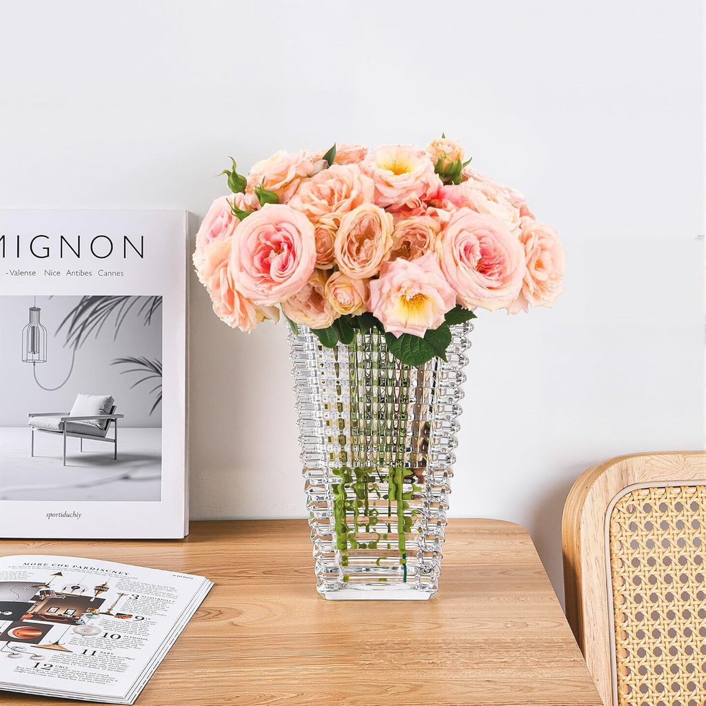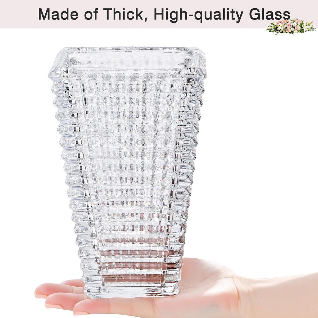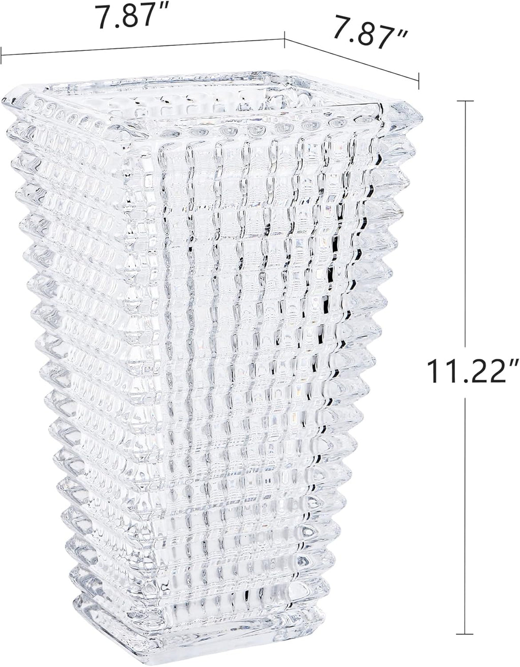 • legant Crystal Design: Crafted from premium clear glass with a unique textured square pattern, this decorative vase adds a modern and luxurious touch to any home or office space