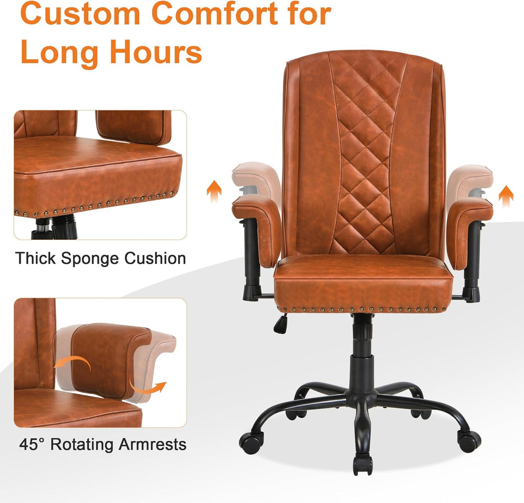 • Stylish PU with Decorative Pattern: Crafted with premium black or brown PU, accented by a distinctive patterned back, this leather office chair brings executive-level style to any home office or workspace