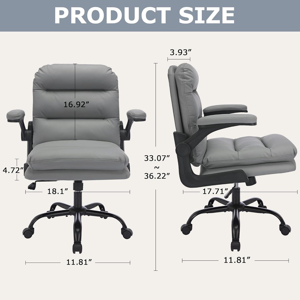 • Premium Materials: This office chair with armrests is constructed using top-notch materials to guarantee maximum comfort and longevity. It features a high-density, thickened sponge cushion (4.72 inches) that provides exceptional comfort and resilience. The chair is upholstered with high-quality PU leather, ensuring waterproof protection and breathability.