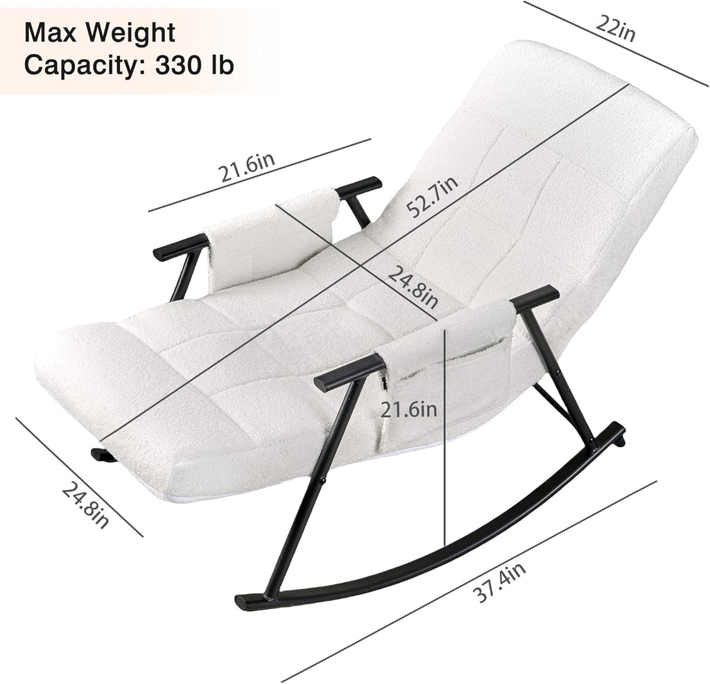 • High Quality & Comfortable: This rocking chair for nursery is built with a sturdy metal frame and soft teddy fabric with thick sponge, offering durability and comfort. The padded backrest and seat provide excellent support, the armrests ensure relaxed arm placement.