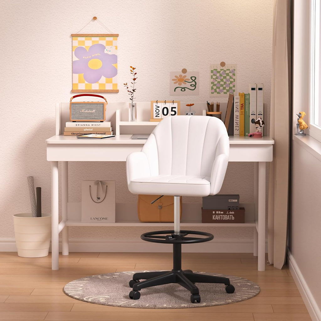 • 【Premium PU Leather & Modern Style】 This home office chair features a modern design with a sleek curved backrest, creating an exquisite look that enhances the ambiance of your home/office. The smooth PU surface ensures breathable and can be easily cleaned with a cloth, offering waterproof and wear-resistant properties. It is highly suitable for office, meeting, study room, vanity room, and bedroom and can be used as a computer chair, drafting chair, vanity desk chair, etc.
