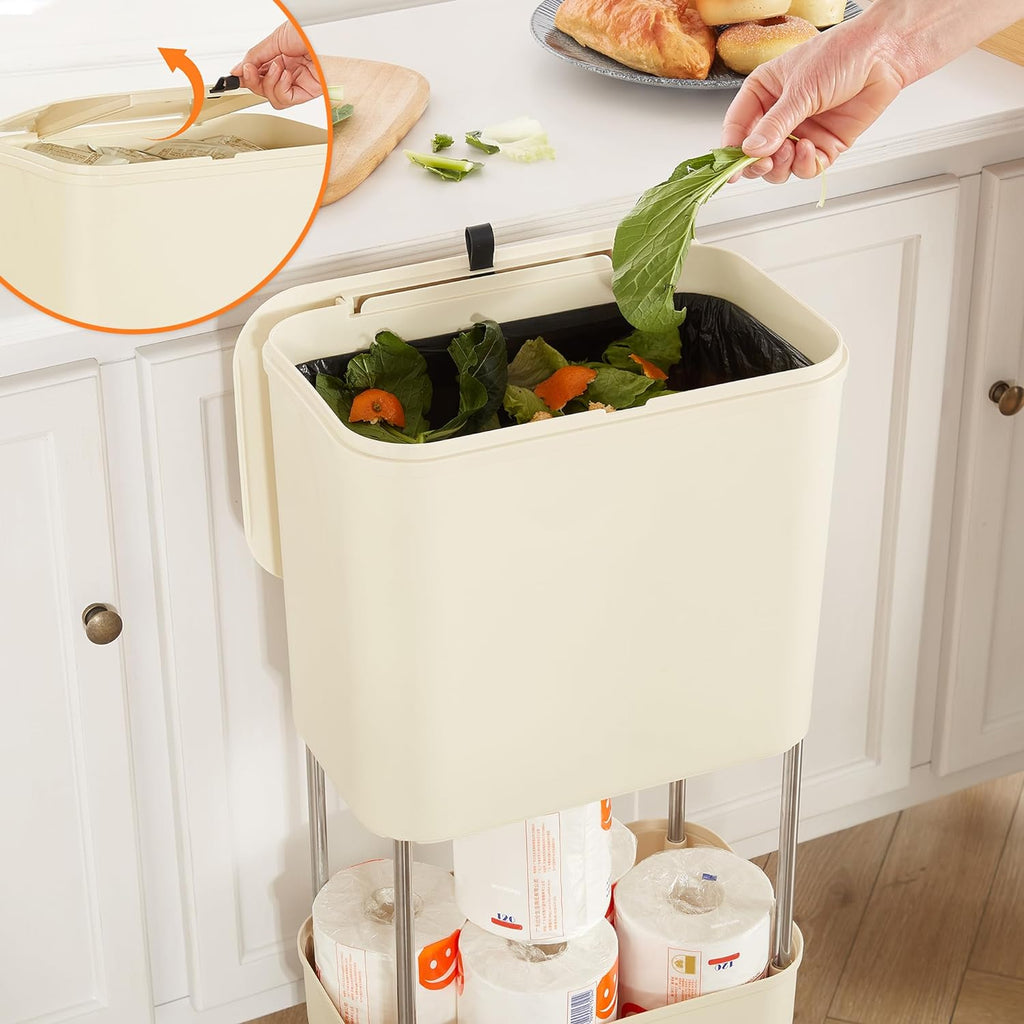 • Dual Usage Options: Equipped with internal partitions and accessories for two usage modes, this dog proof trash can serve as a regular bin or be divided into two compartments for sorting. Additionally, the kitchen garbage can offers two layers of storage space for added convenience.
