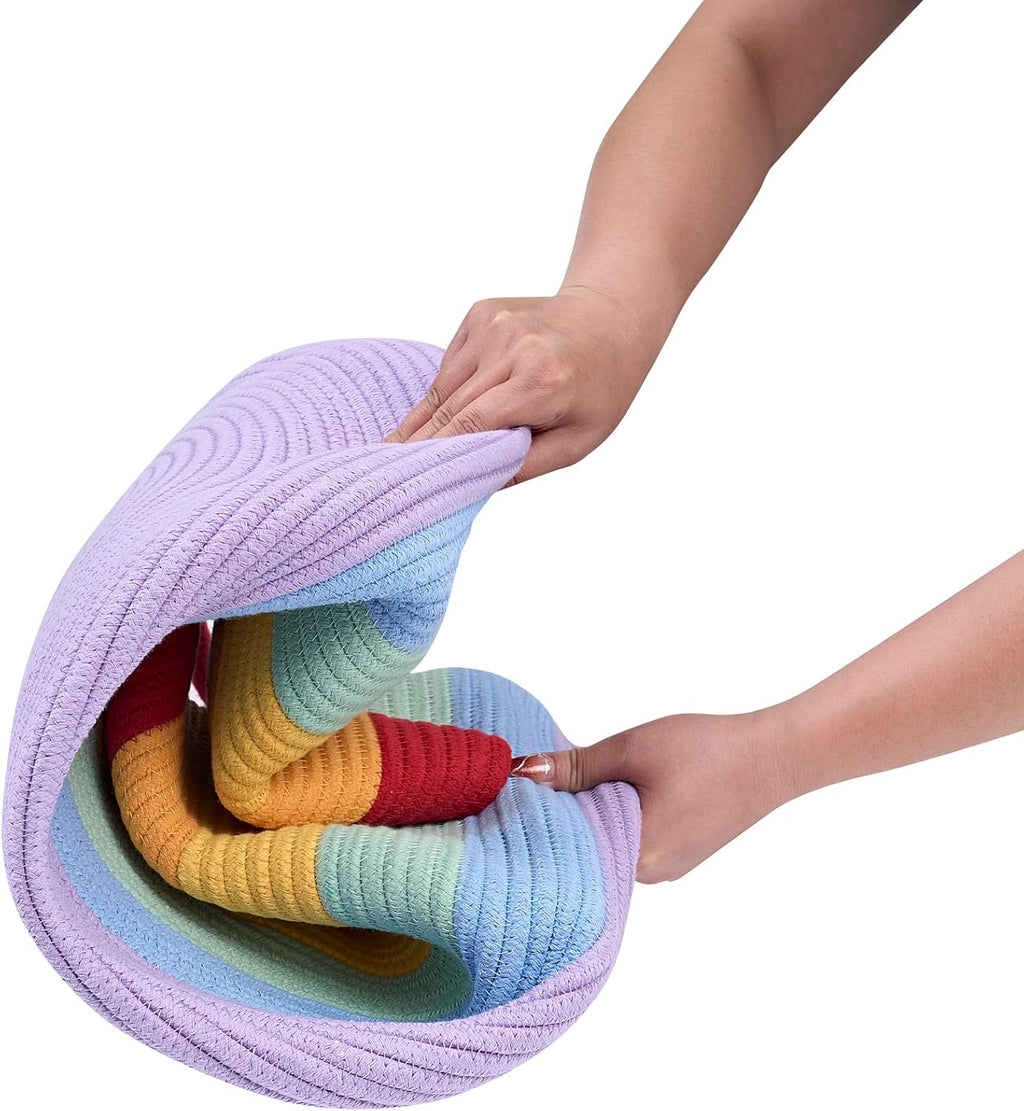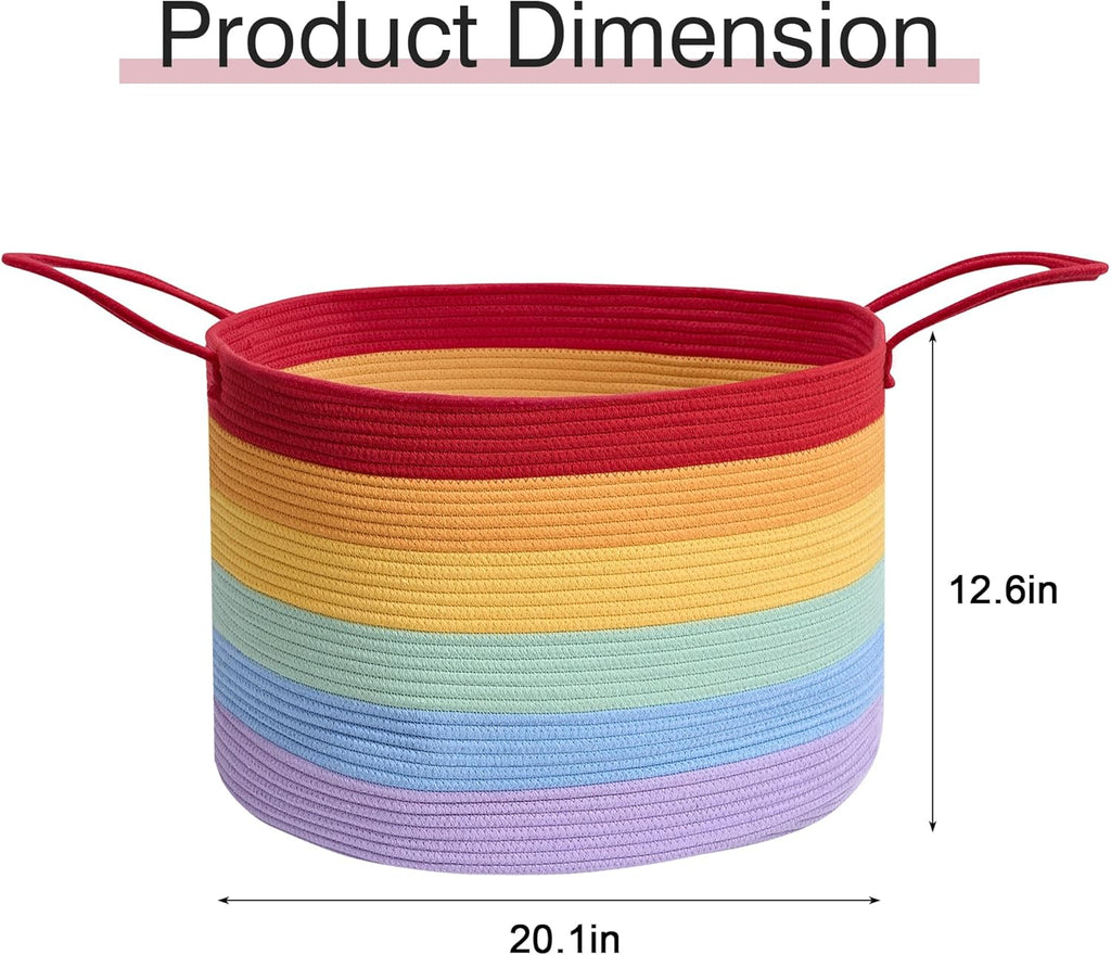 • Vibrant Rainbow Design: Featuring a unique gradient rainbow design with vibrant yet soft colors, our laundry blanket basket not only provides practical storage but also adds a lively touch to your home decor, blending functionality with style.