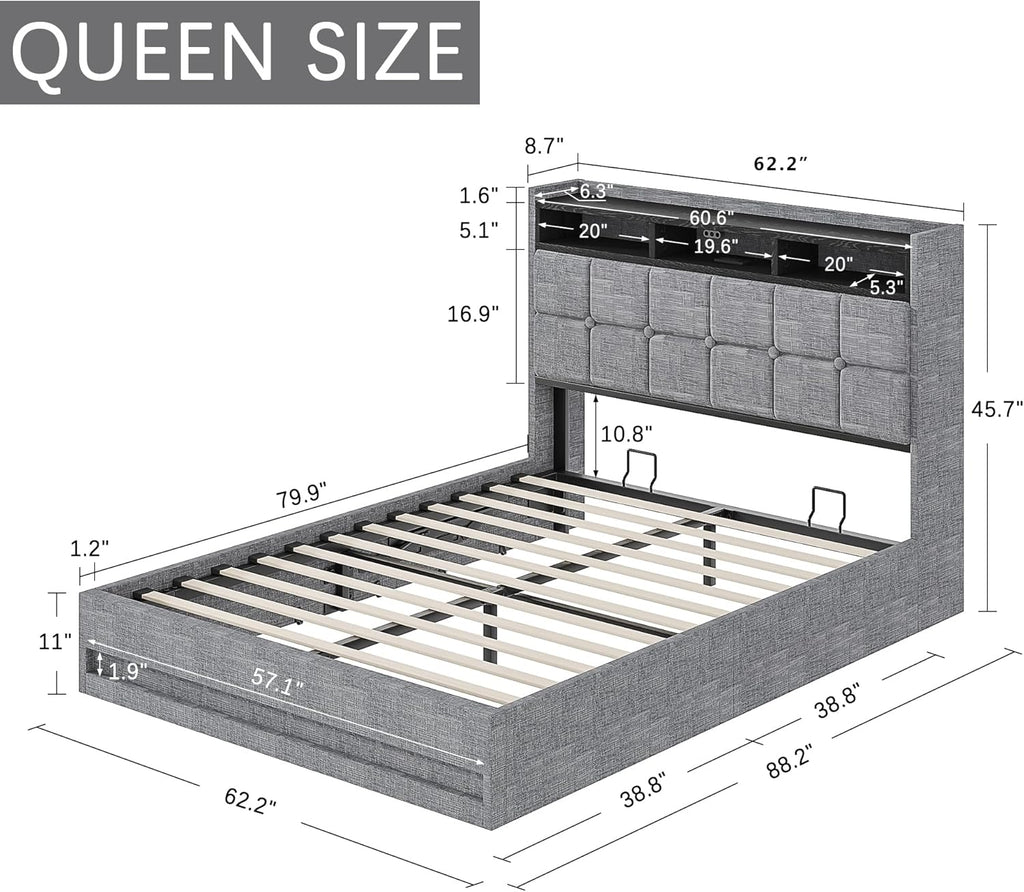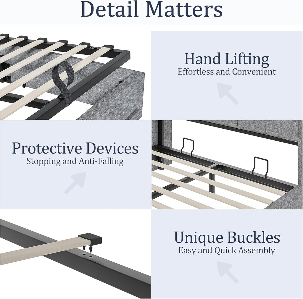 • No Box Spring Needed: The bed frames full features sturdy solid wood slats that keep your mattress secure, making the lift storage bed compatible with memory foam or spring mattresses.