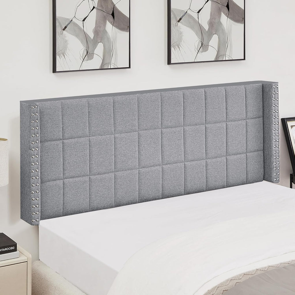 VECELO Linen Upholstered Headboard for Queen/King Size Bed, Tufted Nailhead & Double Wingback for Bedroom