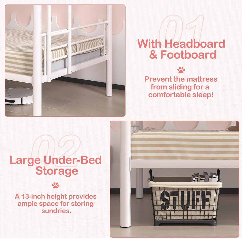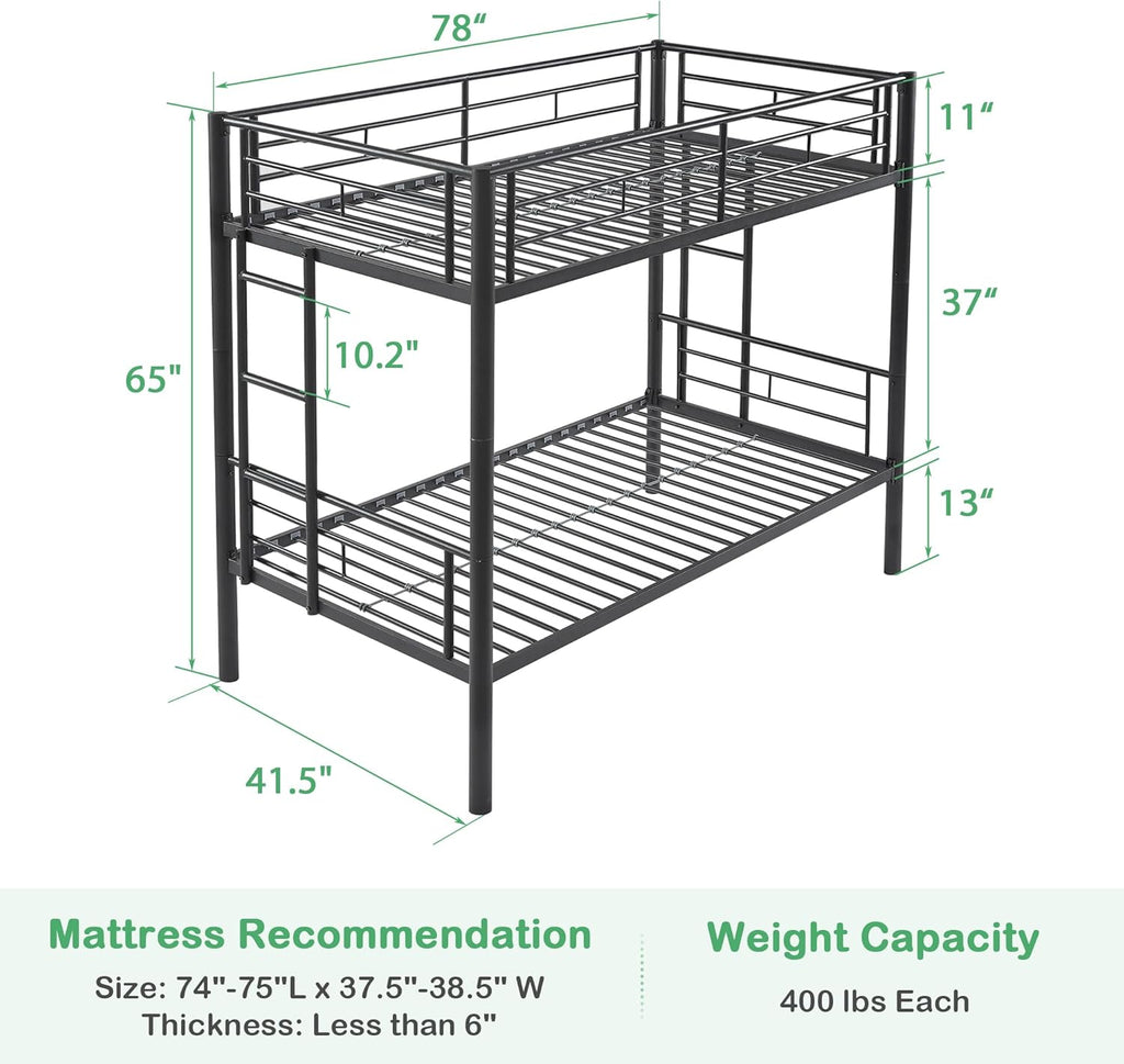 • [Sturdy & Stable] - Crafted from heavy-duty metal, this bunk bed is designed to provide long-lasting stability and durability. With its 20 metal slats, this bunk bed twin over twin offers reliable support and eliminates excess wobbling, guaranteeing a solid and sturdy structure. You can rest assured knowing that our bunk bed provides a stable foundation for a comfortable night's sleep.