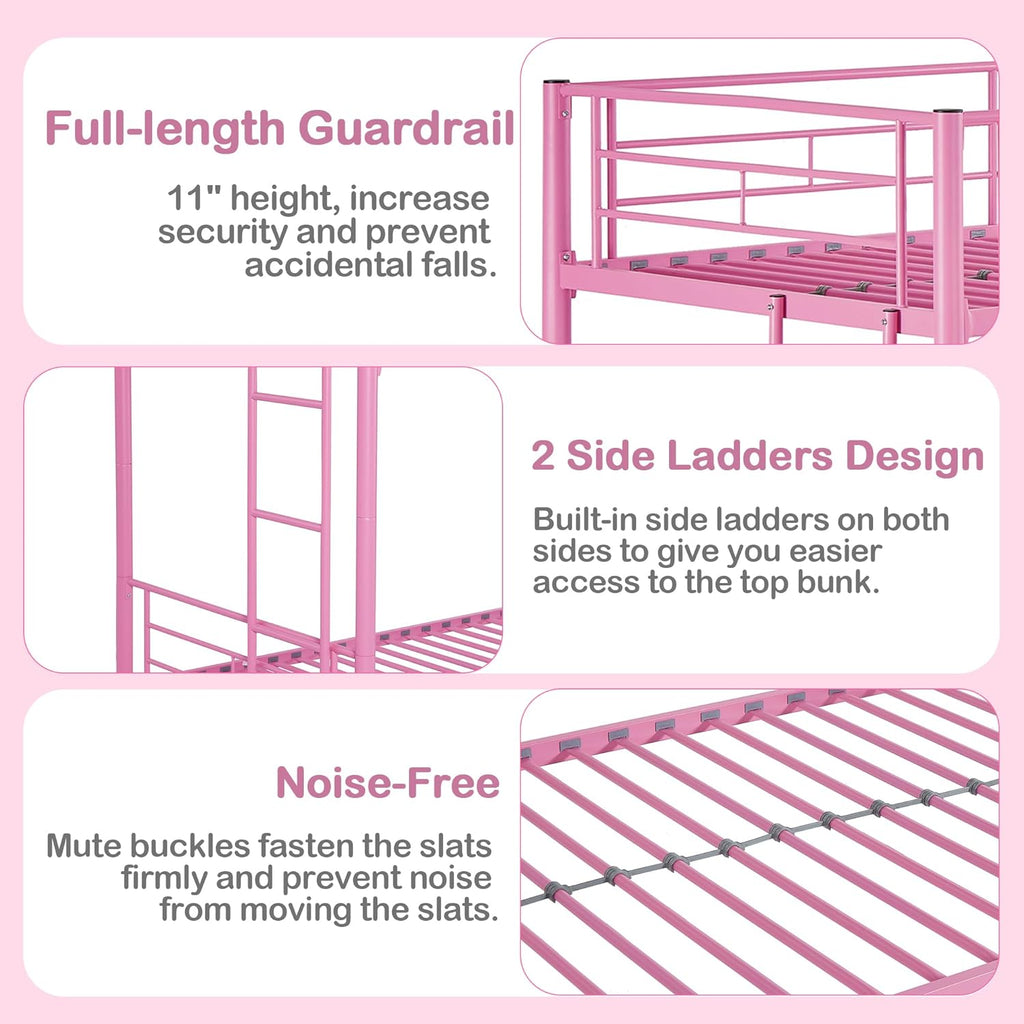 • [Safety Bunk Beds] - The upper bed of our twin over twin bunk bed is surrounded by 11" height full-length guardrails, ensuring that your child stay secure throughout the night, preventing accidental falls, and providing a safe and cozy environment for your children. We've included two side ladders in the design to guarantee easy and convenient access to the top bunk.