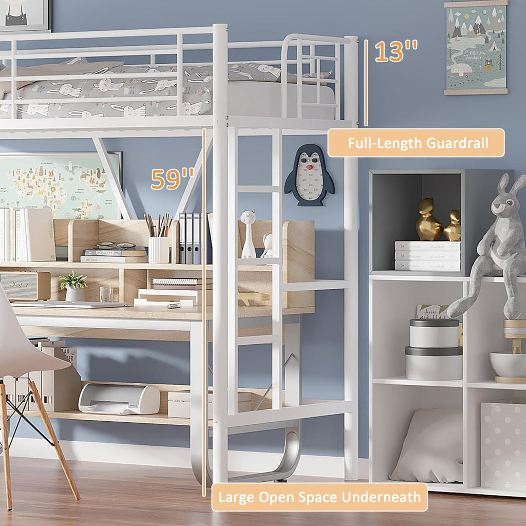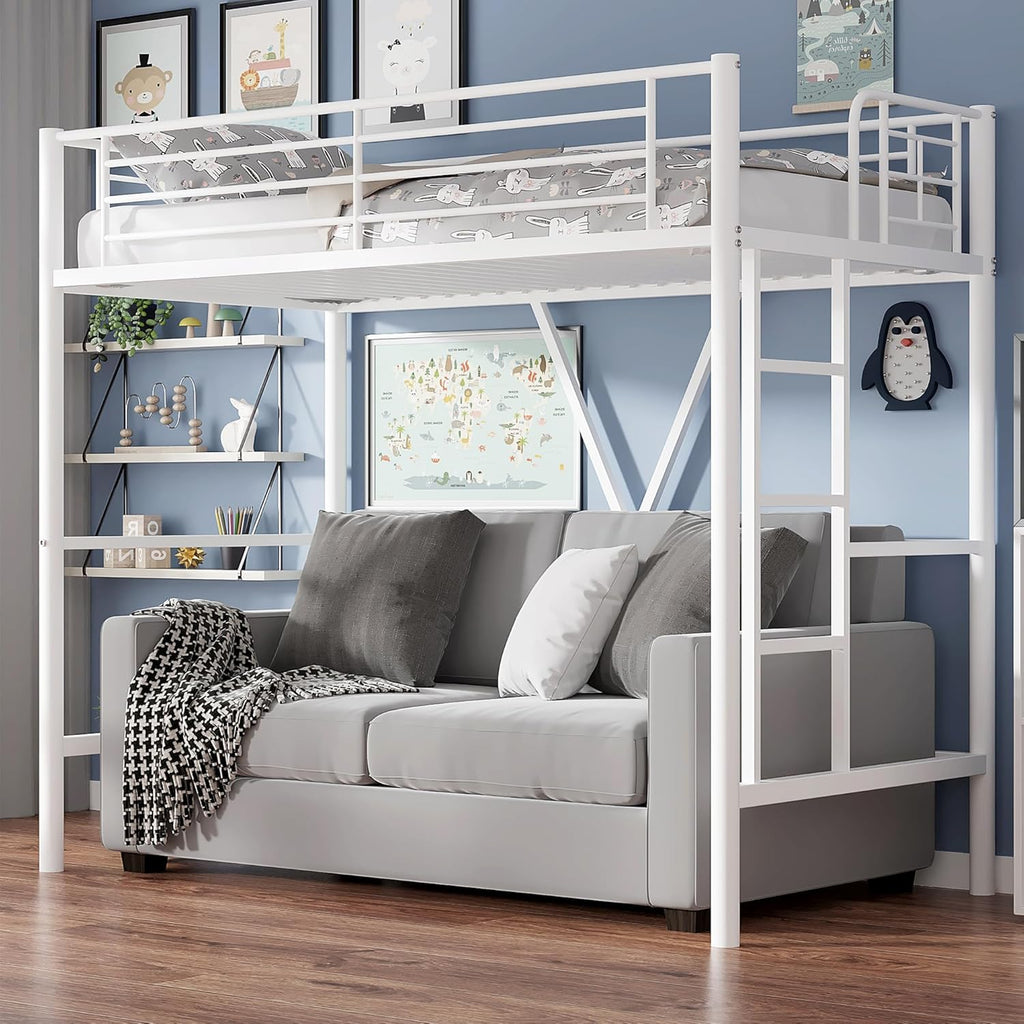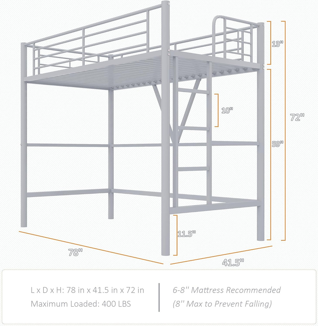 • 【Space-Saving】 The loft bed twin size design effectively utilizes vertical space and frees up the space under the bed. The 59" friendly space is perfect for putting a desk, TV, shelf, or other items you need, maximizing your living space.