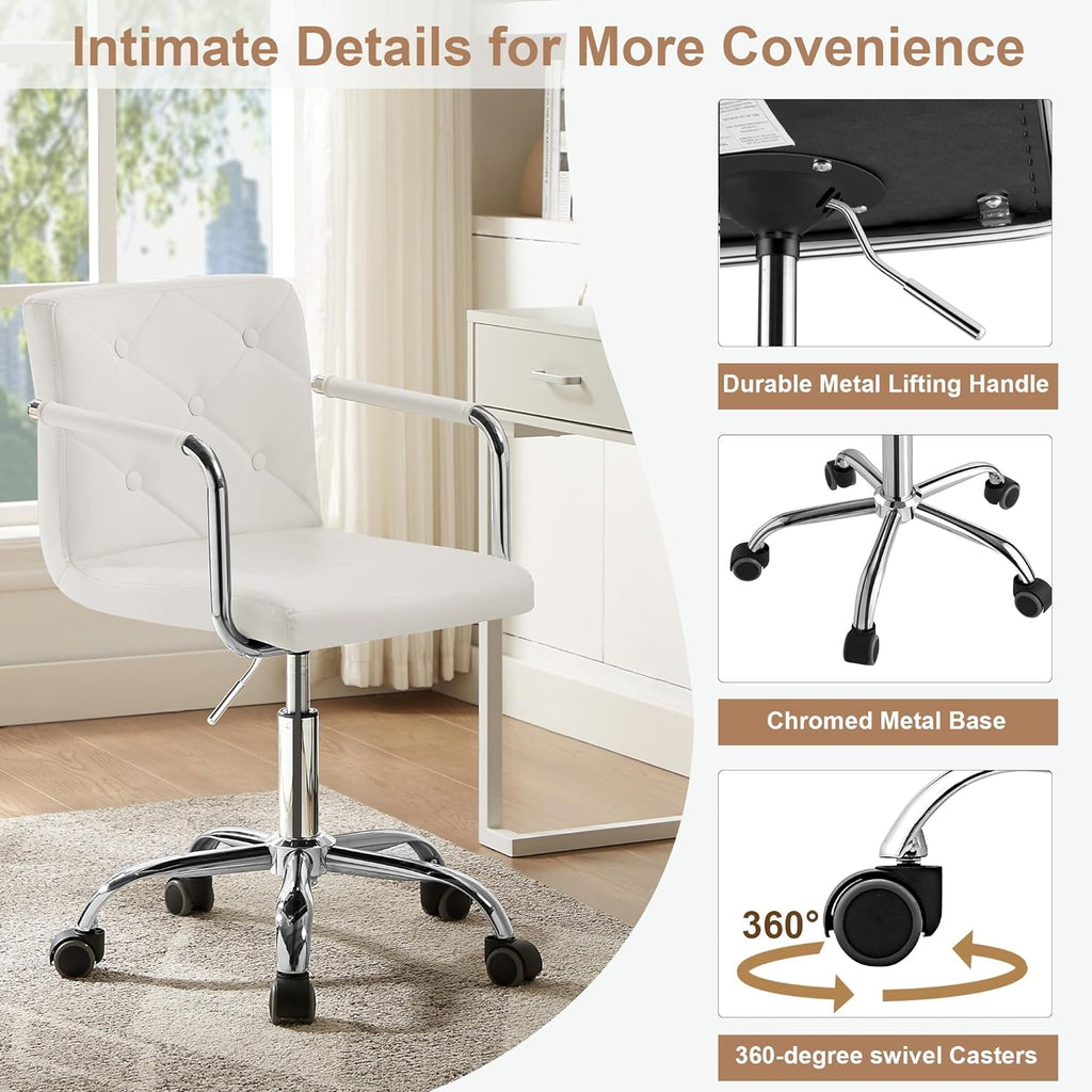 • 360° Swivel Wheels: Heavy-duty 360° swivel rubber caster wheels for smooth rolling, keep your floor clean and unscratched. This rolling office desk chair can roll in any direction with noise-cancelling. Rotatable seat is convenient for you to fetch things and for multi-tasking.