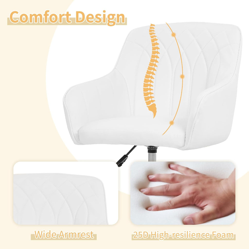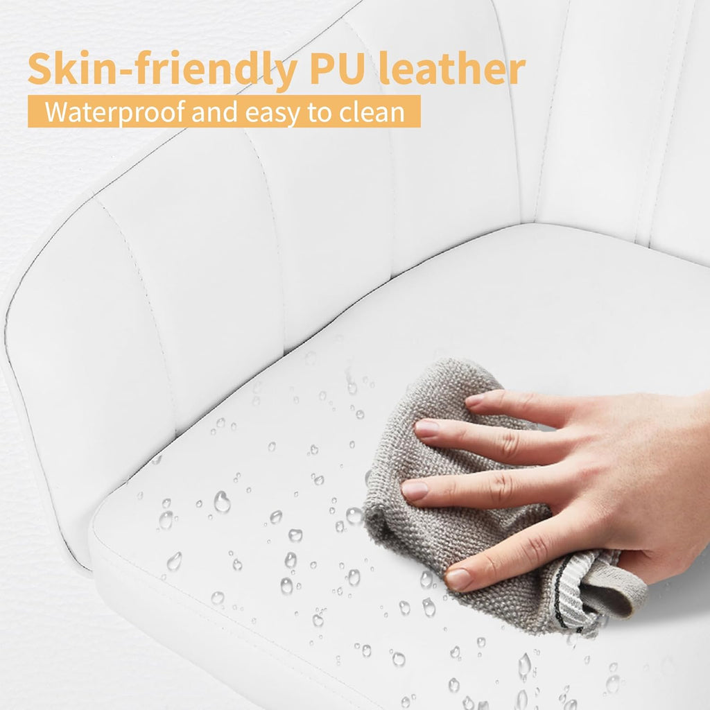 • 【Elegant White PU Leather Upholstery】-Soft, durable white PU leather adds a touch of luxury to your vanity space while being easy to clean.