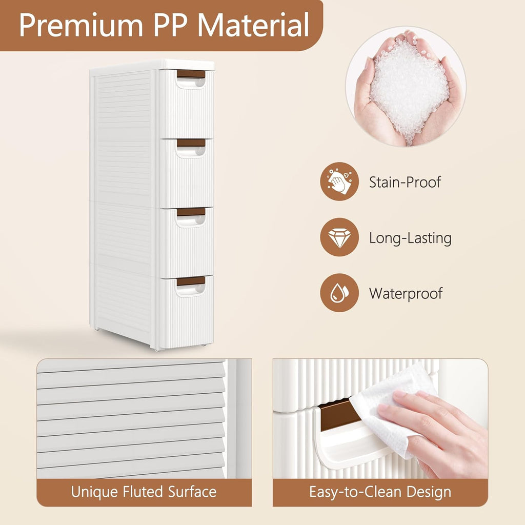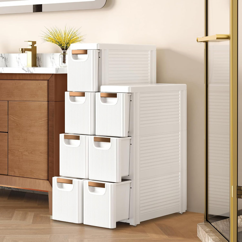 • 【Slim Design for Narrow Spaces】This  plastic storage with wheels is designed for small spaces and fits perfectly in any room, such as studios, bedroom, home offices, bathrooms, offices, or laundry rooms.