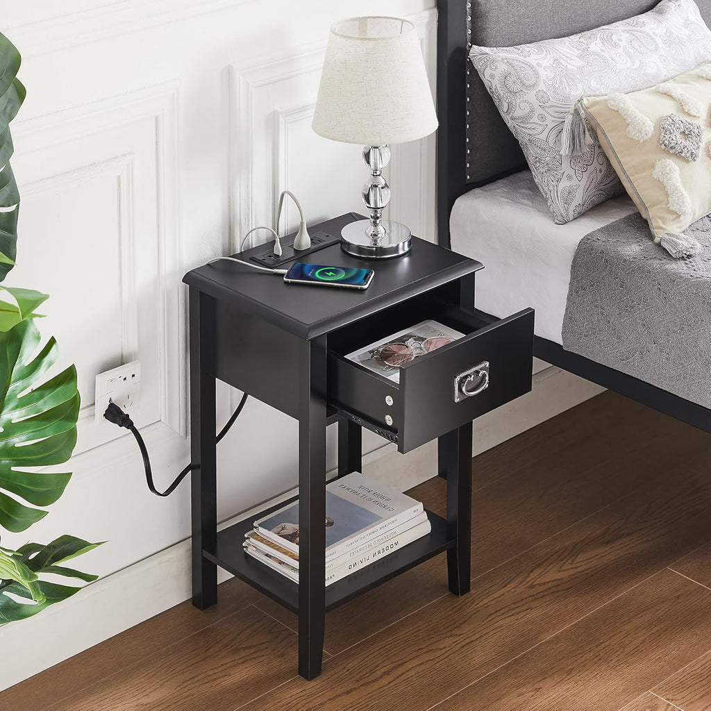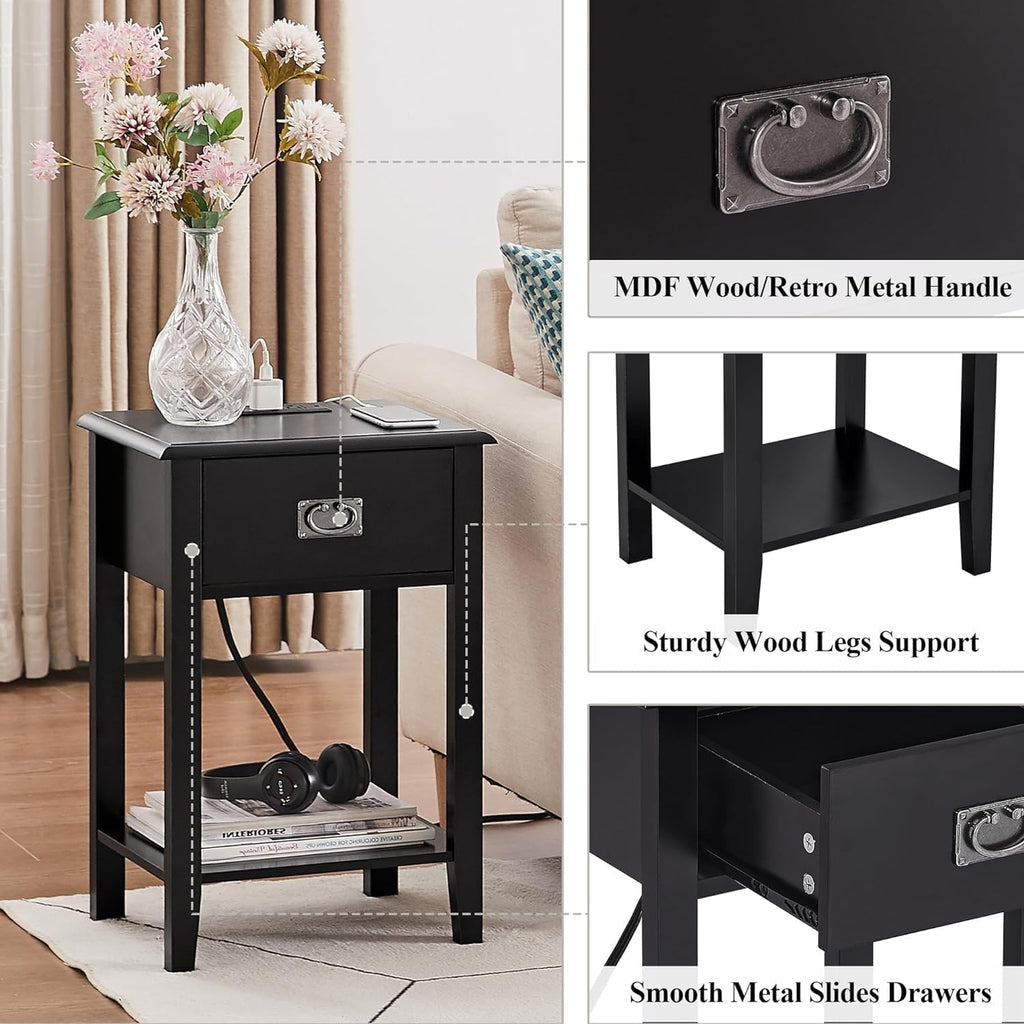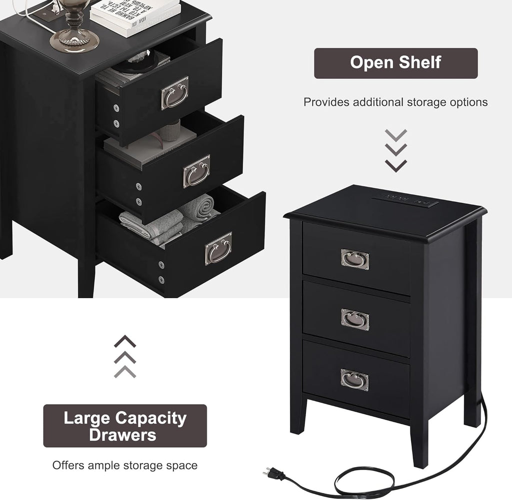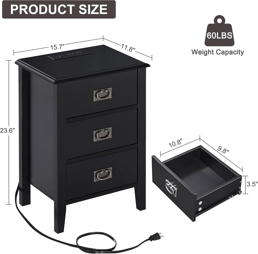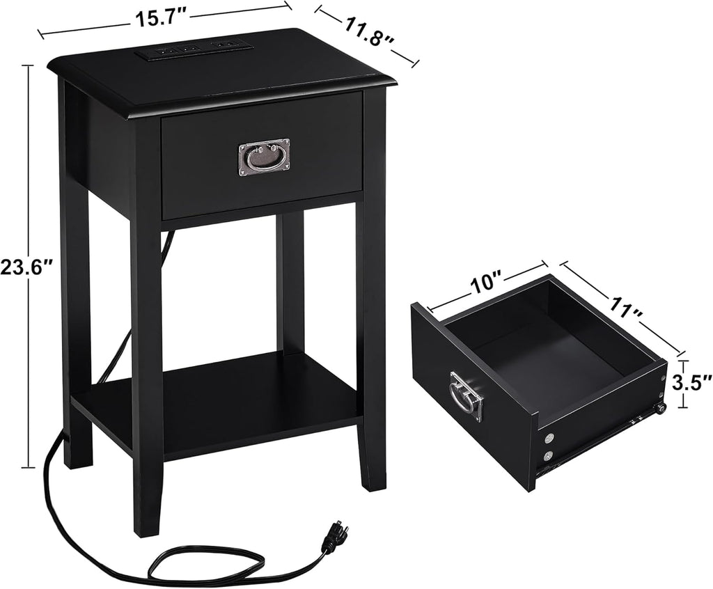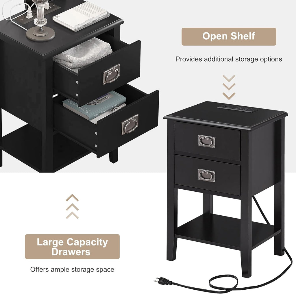 • [Nightstand Set of 2 with Charging Station]--VECELO black nightstand’s charging station design with 2 standard power outlets and 2 USB ports for easy charging. The length of the charging wire is 78.8inches, no longer worry about mobile phones, lamps and other electronic products long-distance charging problems.
