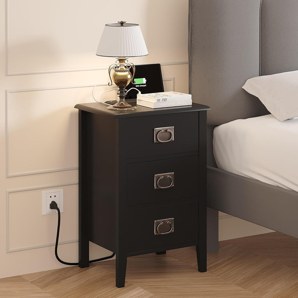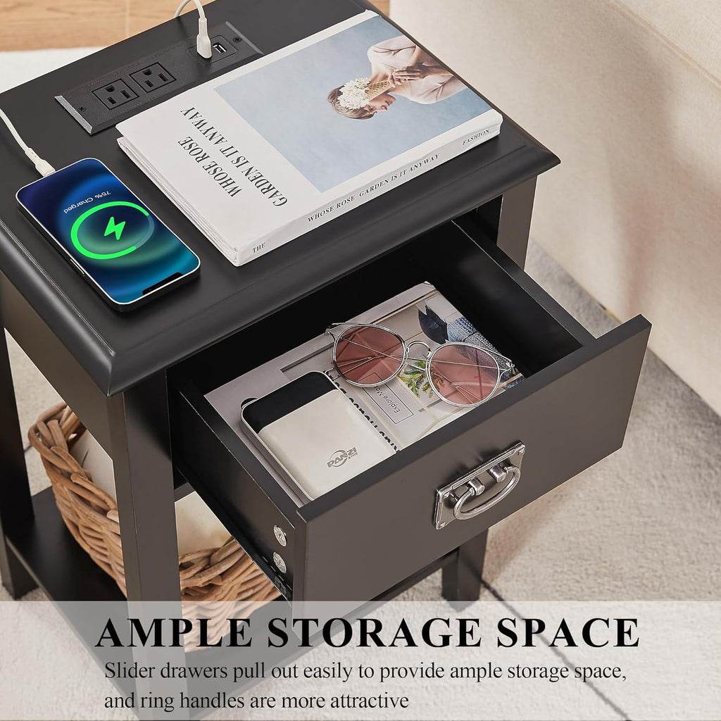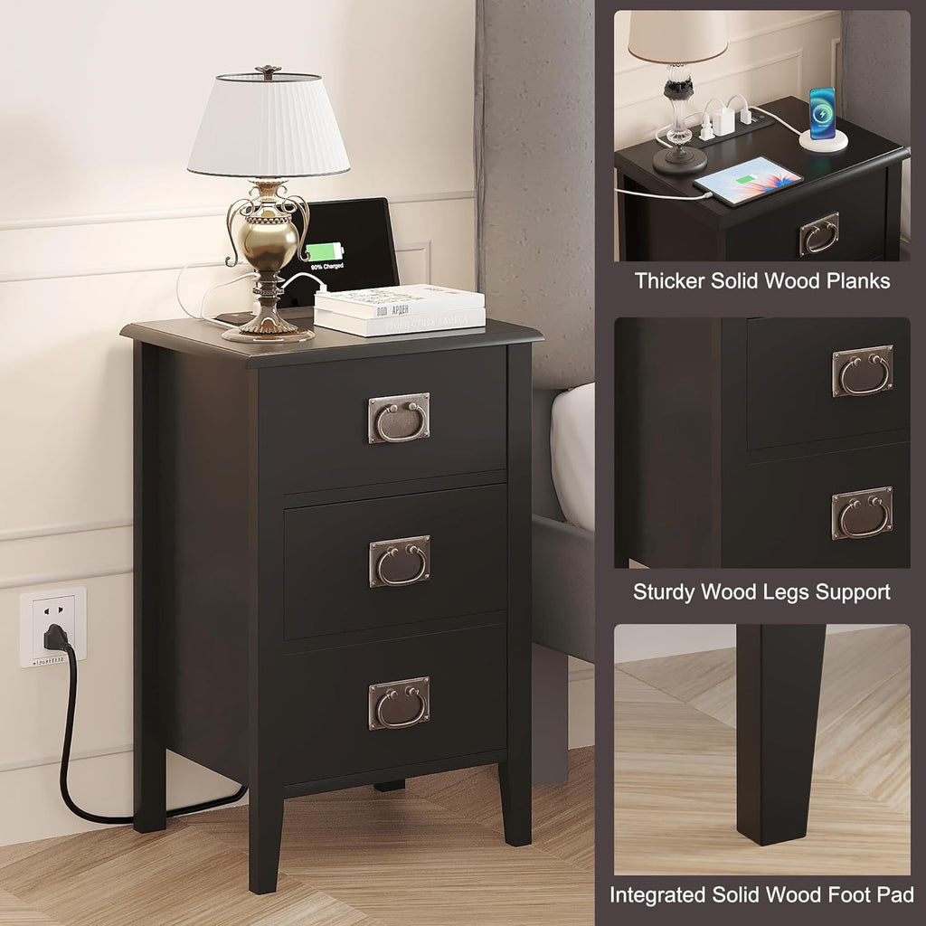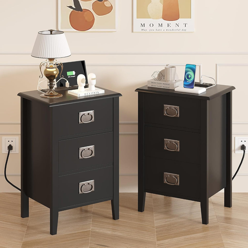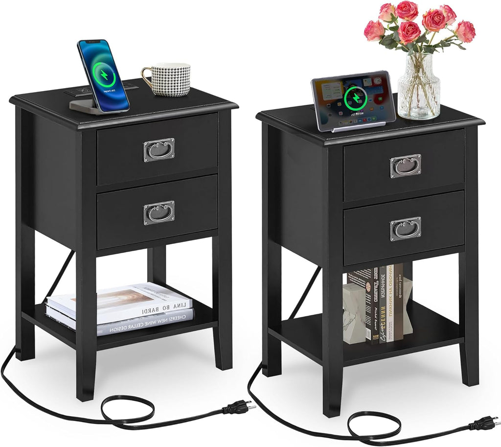 • [Nightstand Set of 2 with Charging Station]--VECELO black nightstand’s charging station design with 2 standard power outlets and 2 USB ports for easy charging. The length of the charging wire is 78.8inches, no longer worry about mobile phones, lamps and other electronic products long-distance charging problems.