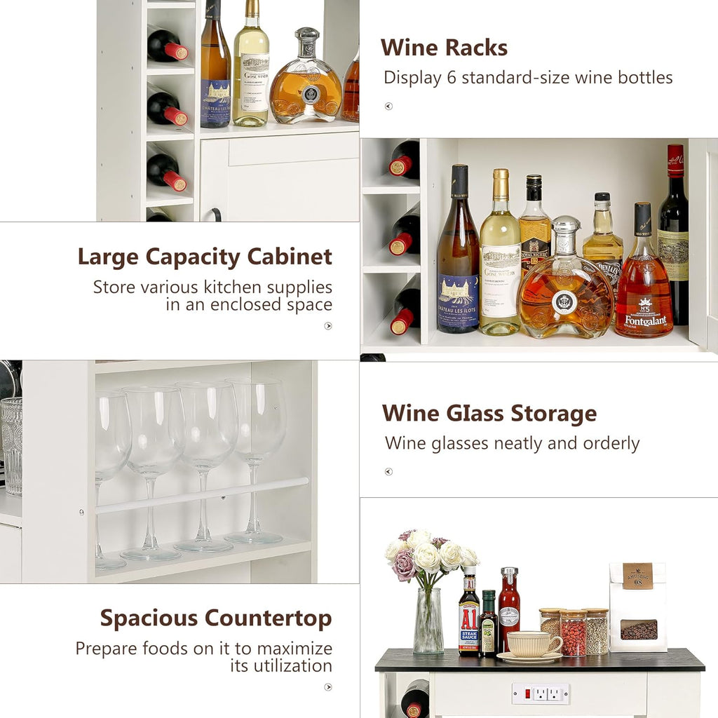 • Ample Storage Space: This island table for kitchen offers a large storage capacity to solve the problem of limited counter and kitchen space. The kitchen island with storage features a microwave shelf, wine racks, open shelves and large storage cabinet for categorized storage to keeping your kitchen organized.