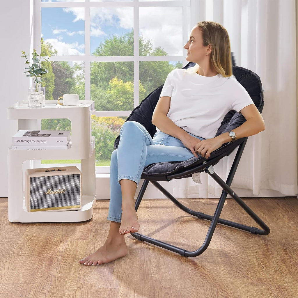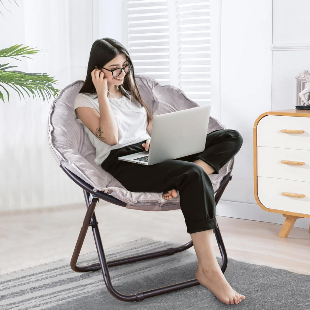 VECELO Saucer Chair for Adults, Folding Moon Chair with Metal Frame