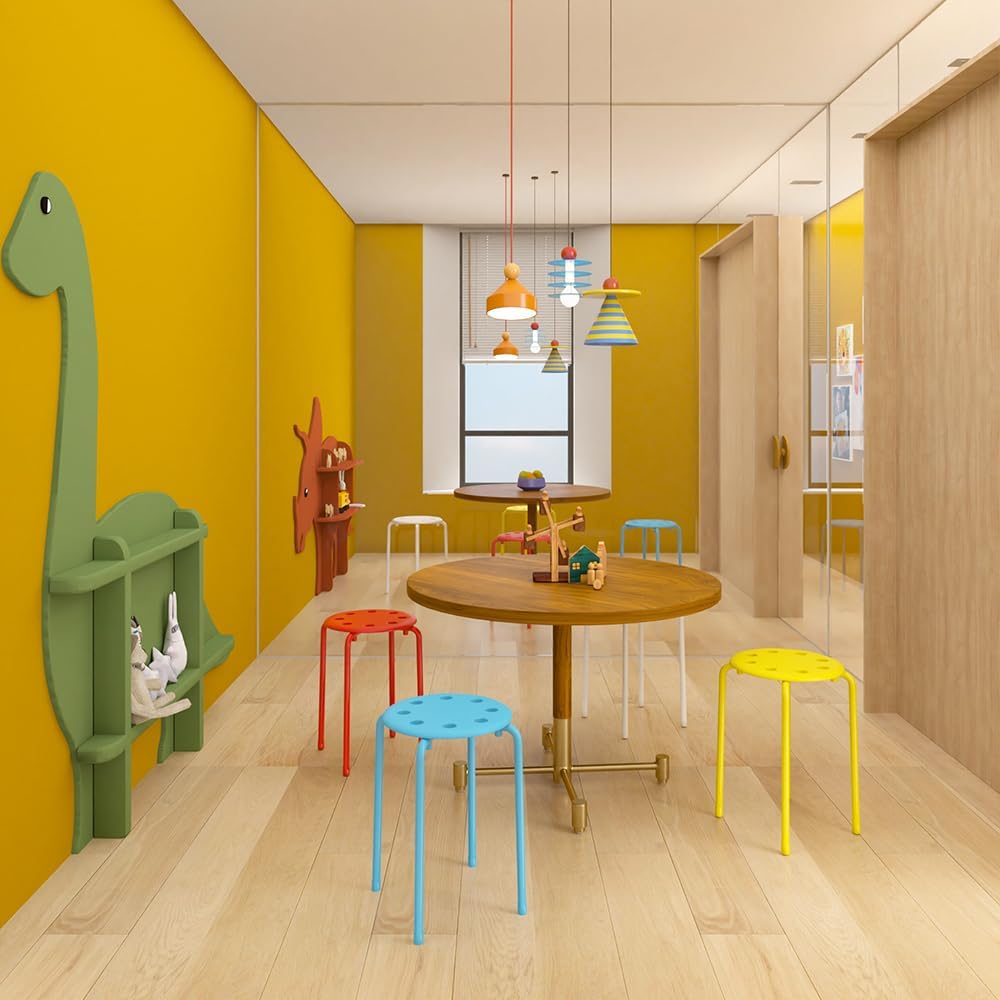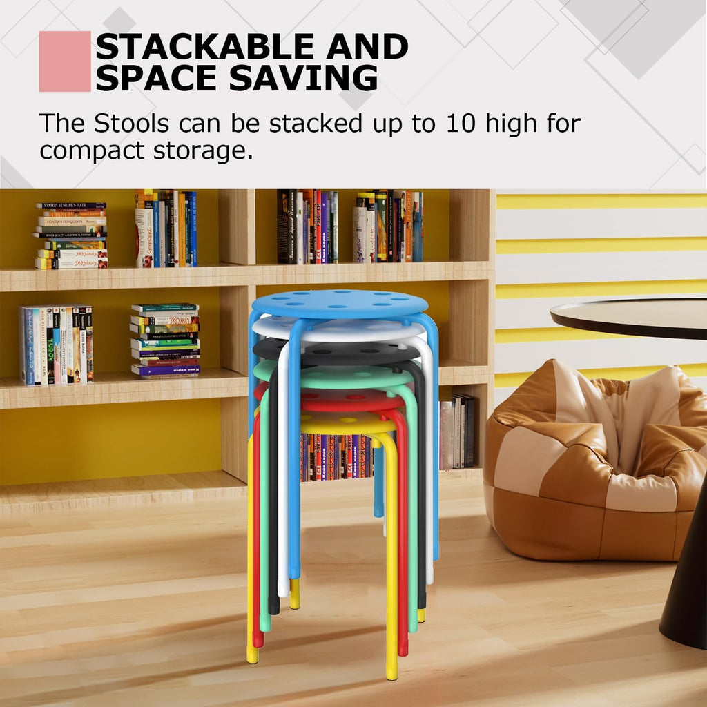 • 【Colorful Stools for Various Places】6-piece portable stools include red, yellow, blue, green, black and white for classrooms, offices, parties, events, conference centers or anywhere extra seating is needed.