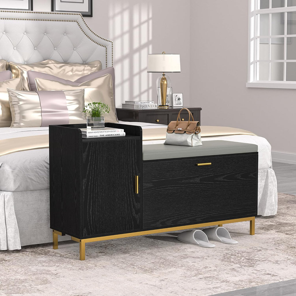 • Flip Drawers Shoe Storage Bench:Shoe bench with flip drawers storage can store up to 8-12 pairs shoes (depending on the sizes of shoes), keeping your shoes well organized and reduce clutter. The panel in each compartment is removable or adjustable to meet your different shoes storage needs.