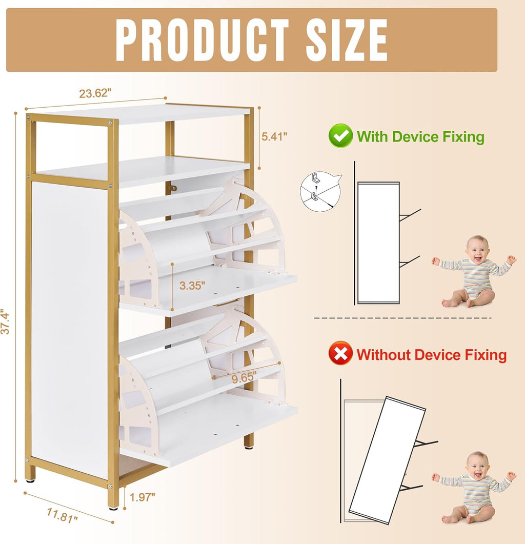 • Reliable and Safe Shoe Cabinet: Shoe organizer cabinet is equipped with an anti-tipping device that allows you to secure the back of the cabinet to the wall. Preventing accidental tipping and ensuring the safety of children