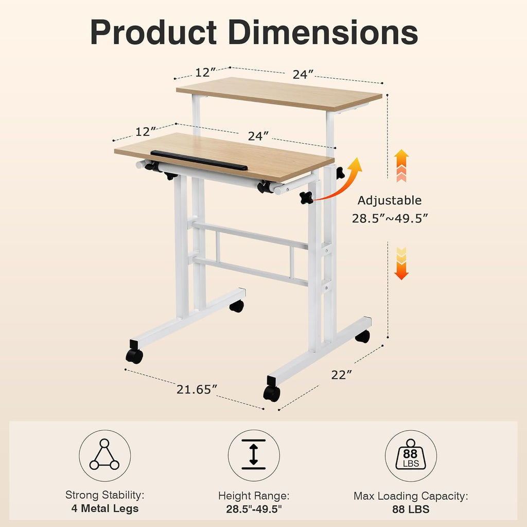 VECELO Small Mobile Standing Desk 24 Inch