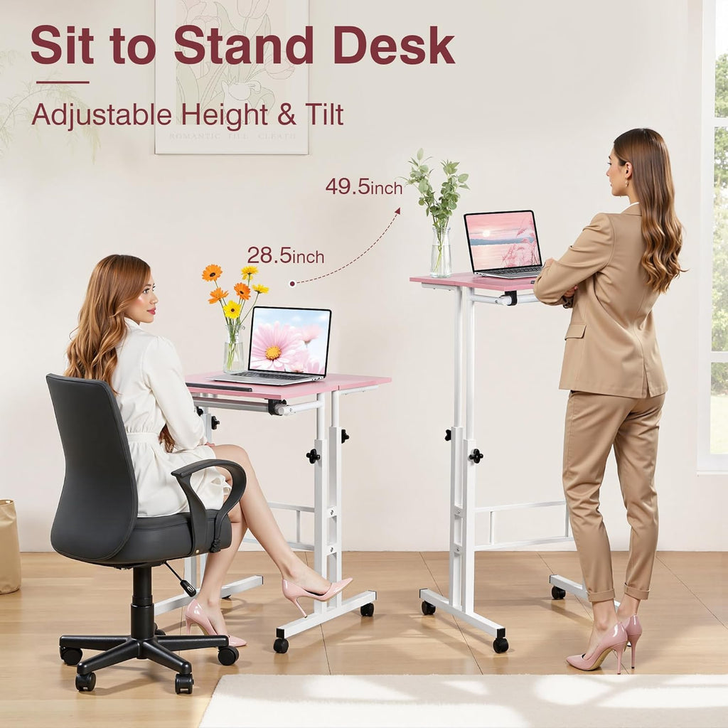 • Standing and Sitting Modes: The small mobile standing desk offers flexible height adjustments ranging from 28.5 to 49 inches, allowing you to easily switch between sitting and standing positions. This adaptability promotes better posture and prevents the discomfort associated with prolonged sitting, supporting both productivity and health.