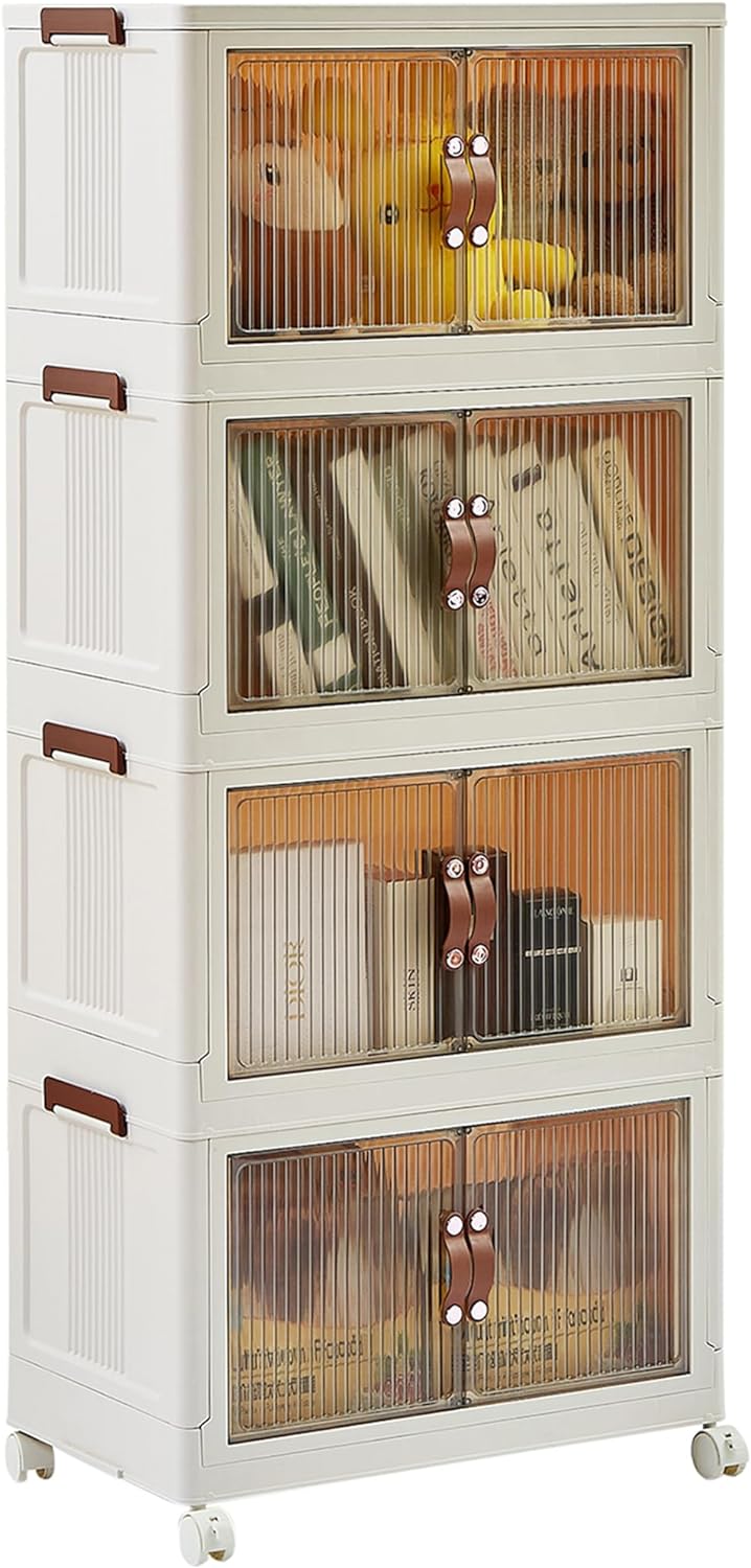 • 【Dual-Opening Doors】Our stackable storage bins open front feature two ways to access items—either through the top lid or the front door. The transparent double-hinged front door opens easily and allows for quick identification.