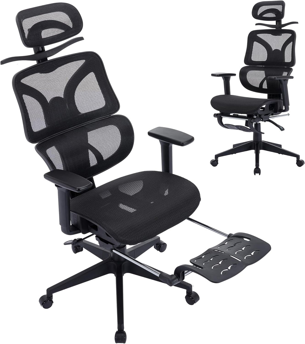 VECELO Swivel Ergonomic High Back Mesh Office Chair with Retractable Footrest