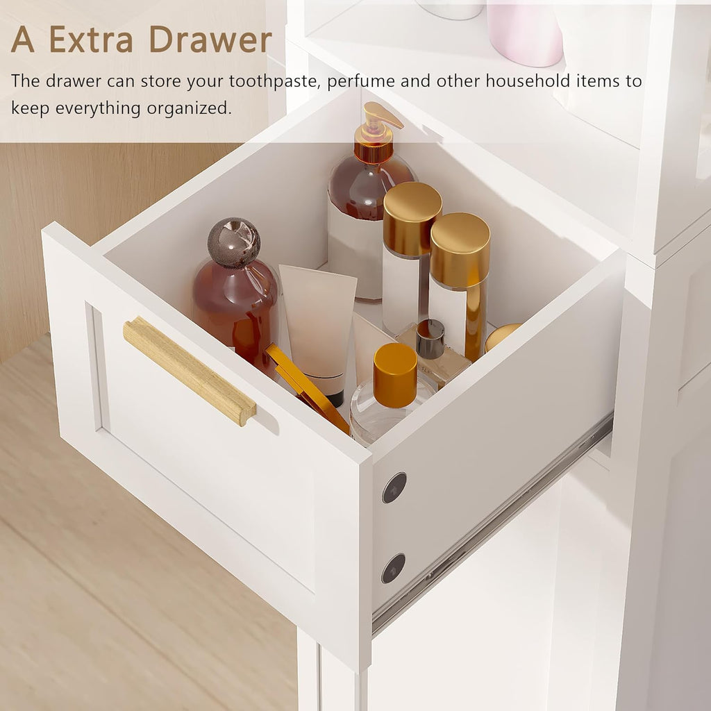 • 【Removable Laundry Hamper】With a built-in hidden laundry basket, this laundry cabinet makes it easy to organize dirty clothes and you can effortlessly carry it to the washing machine to keep the space neat and organized, which is both practical and aesthetically pleasing