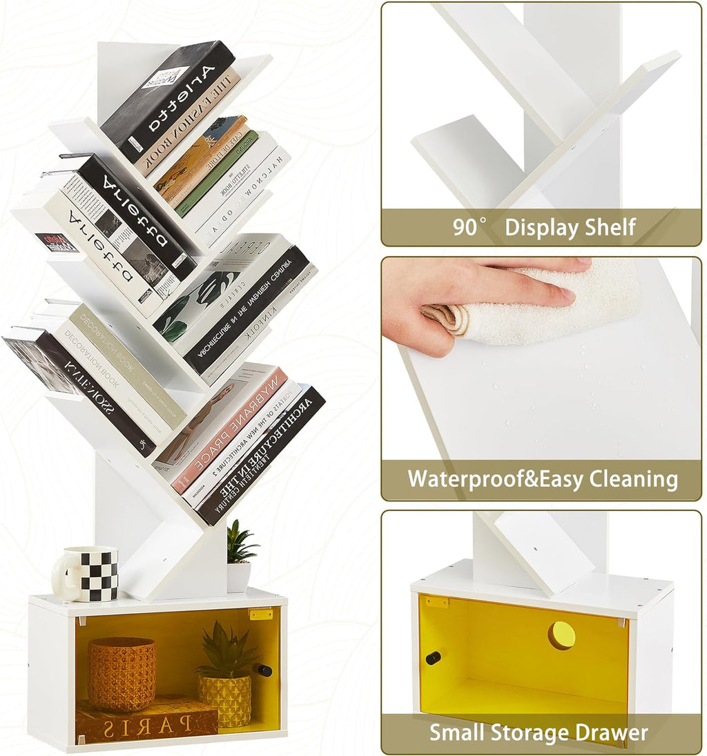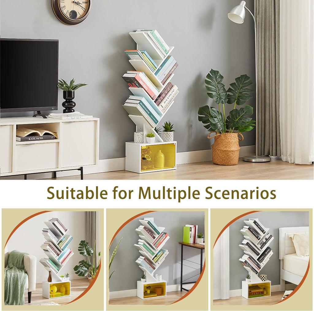 • 【Stable and Sturdy Structure】-- Not only does this tree book shelf provides great stability and durability, because there is a small storage cabinet at the bottom,to secure the bookshelf floorstanding, which greatly improves the safety and stability of the bookshelf and for storage meanwhile.