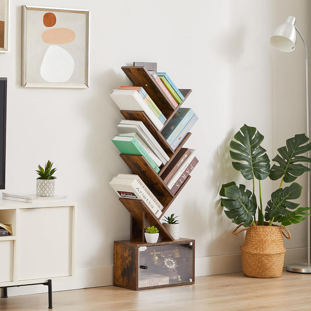 • 【Multi-functional Wooden Bookshelf】-- VECELO tree bookshelf,Perfect choice for using in living room to display family alubums, CDs,magazones or other favorite collections; to store books,file folders and other decorative stuff in office, and also suitable for kids' room to organize toys and books.