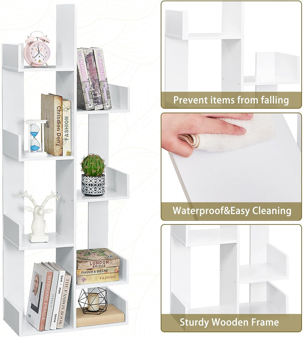 VECELO Tree Bookshelf, Geometric 8 Shelf Tree Bookcase Wood Bookshelves Display