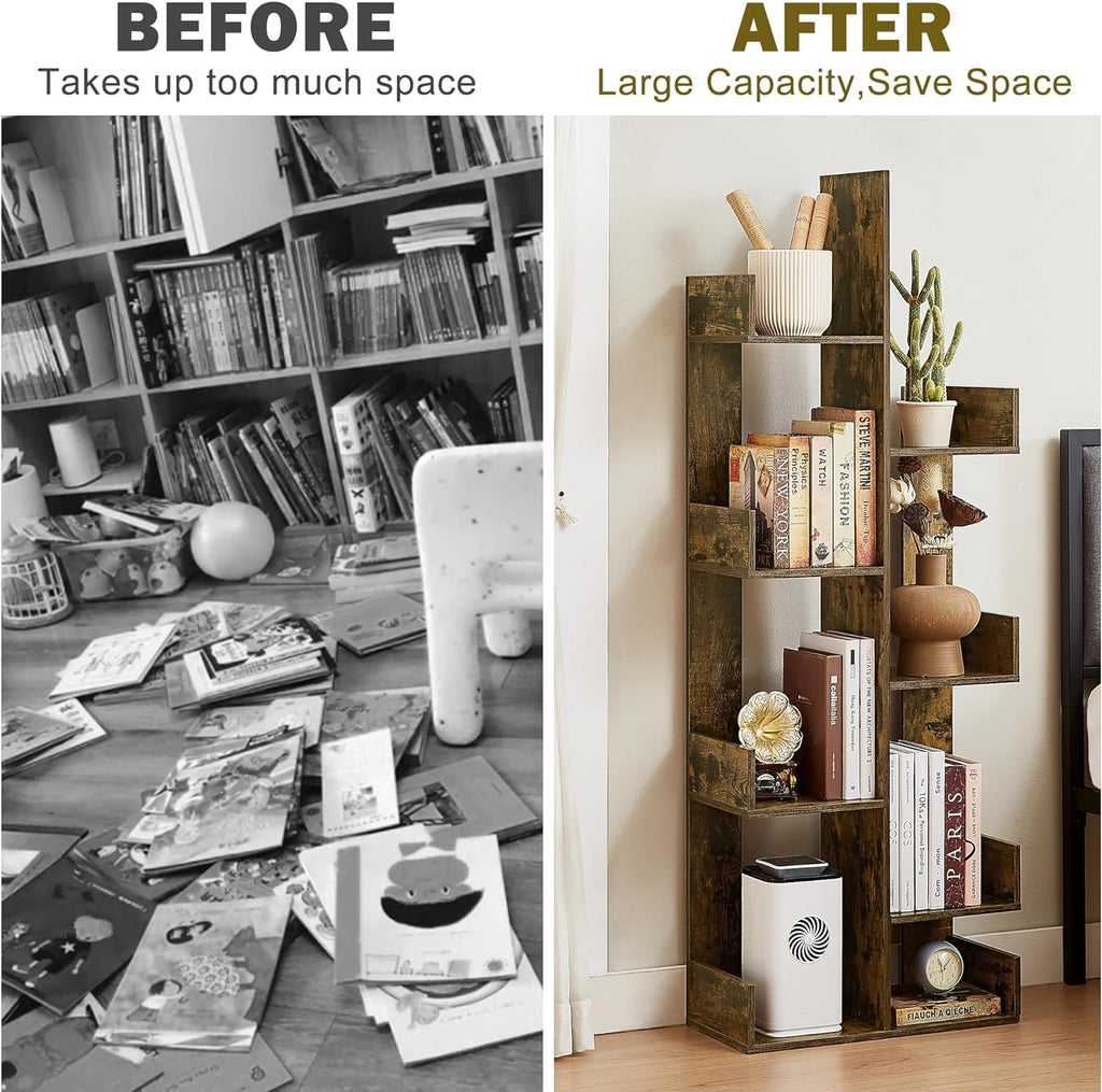 • 【Easy to Maitain&Clean】This tree bookcase display shelf is perfect for decorating, organizing and storing your items while keeping them neat and organized in your room. The MDF Board shelves are waterproof, and can be easily cleaned with a wet cloth.