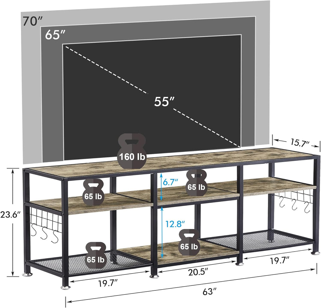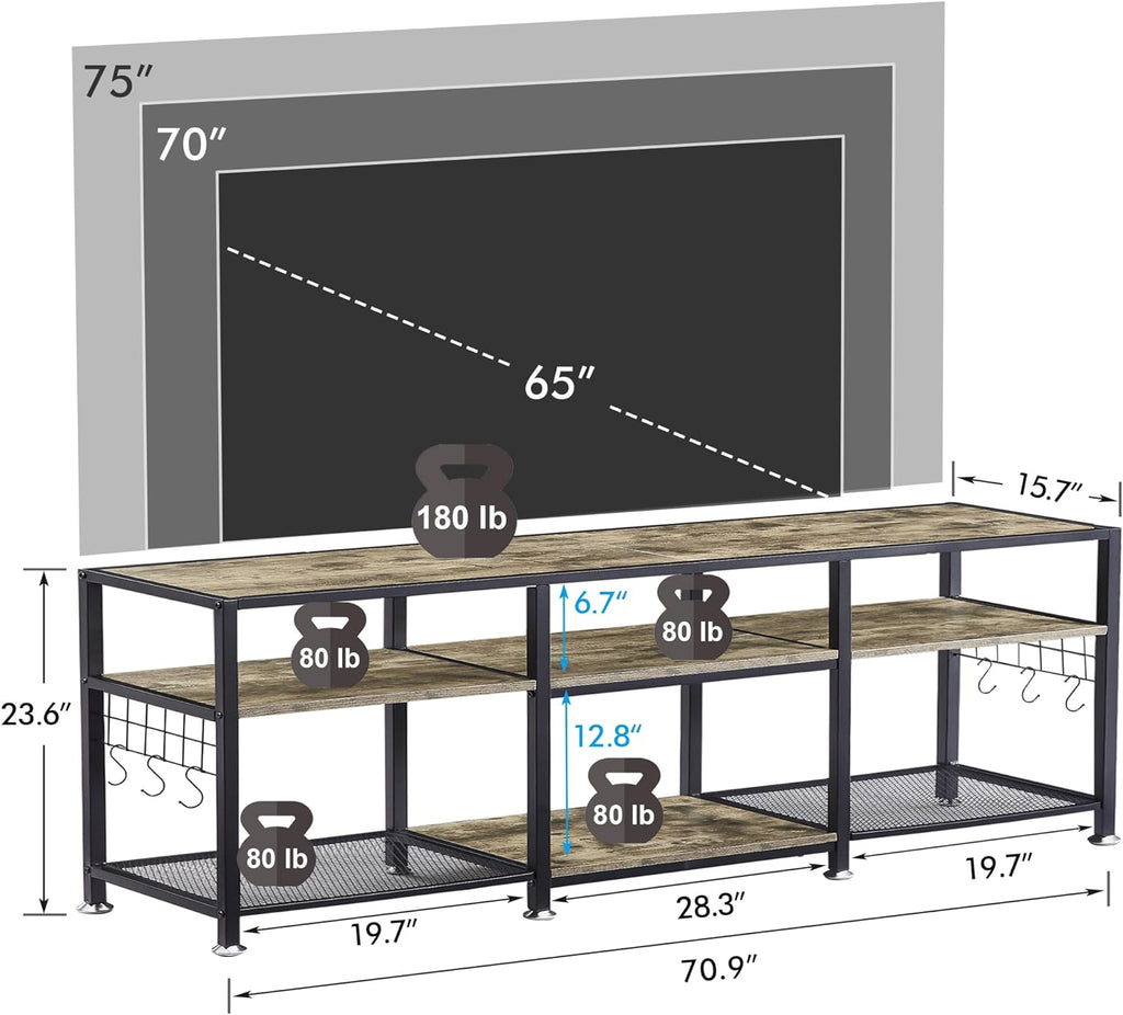 • 【Solid Construction】Constructed from particleboard braced and steel frame that provides long-lasting strength for a TV up to 70 inches. The tabletop can bear up to 180 lb and each of the lower 2 shelves can bear up to 80 lb. (70 x 15.7 x 23.6 inches)