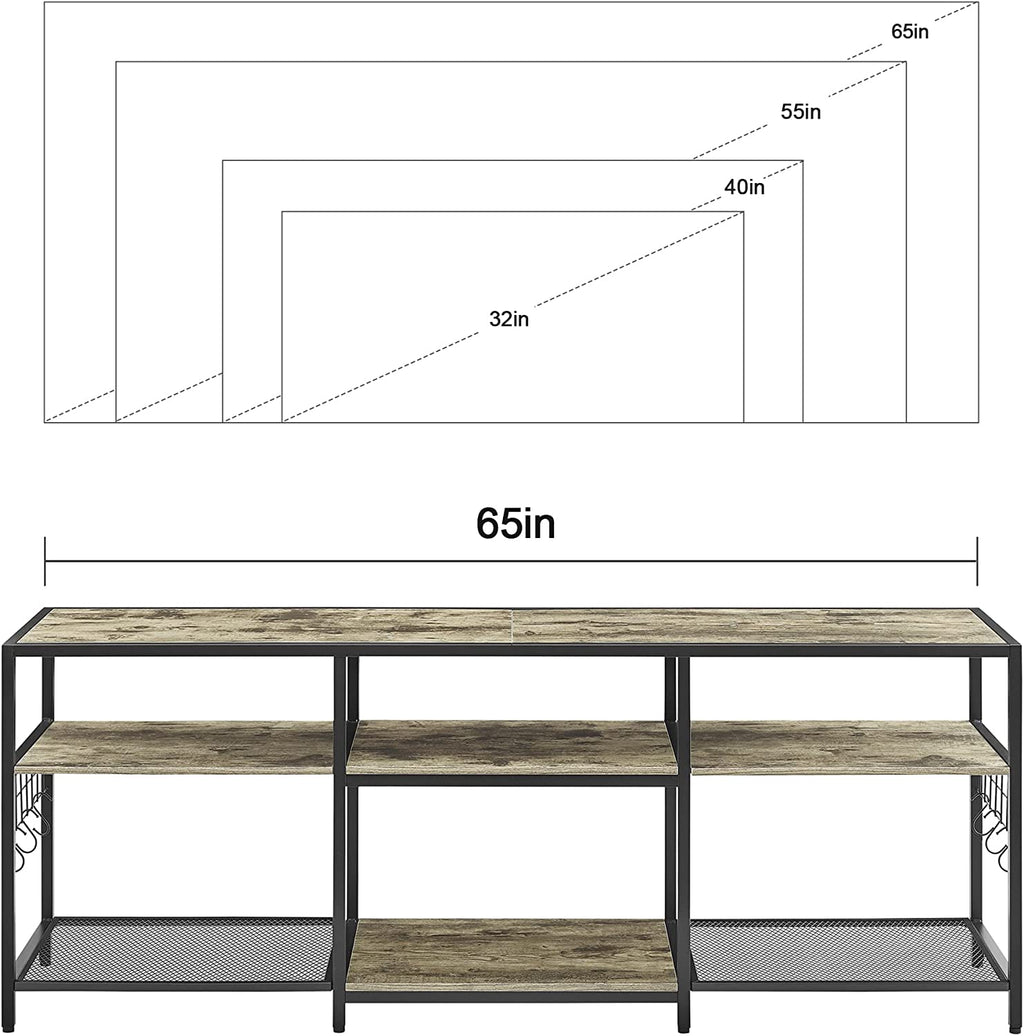 • 【An Industrial Touch】The TV stand is designed with grey shelves and a matte black metal frame to match the decor of most homes. Adding novelties to your home.