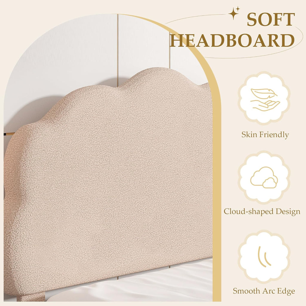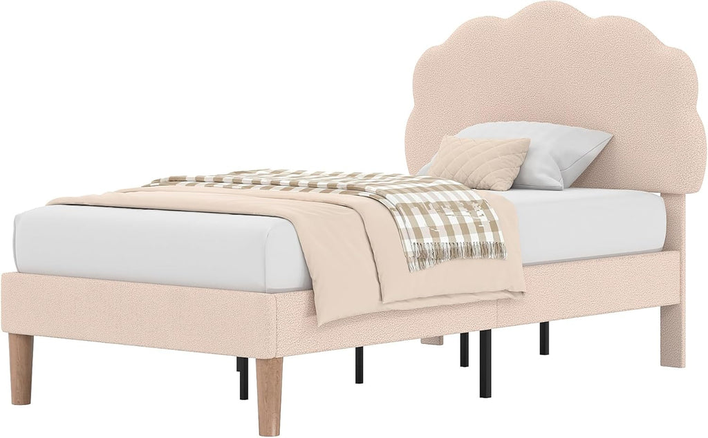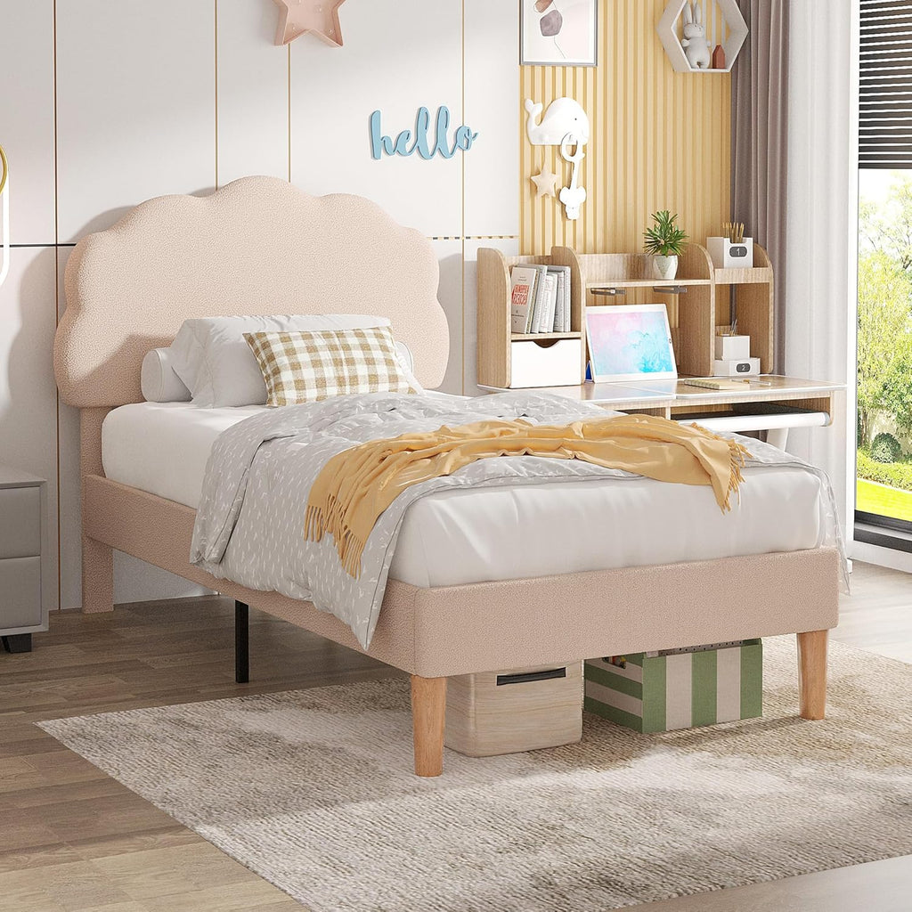 • **Adorable Design**: This twin beds features a unique cloud-shaped headboard, available in both beige and pink, adding a whimsical touch to any child's bedroom.