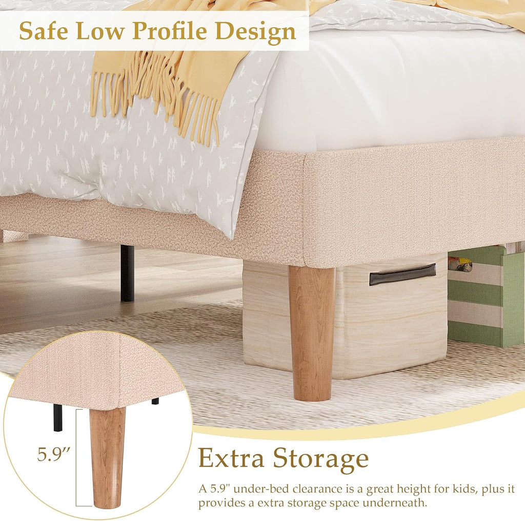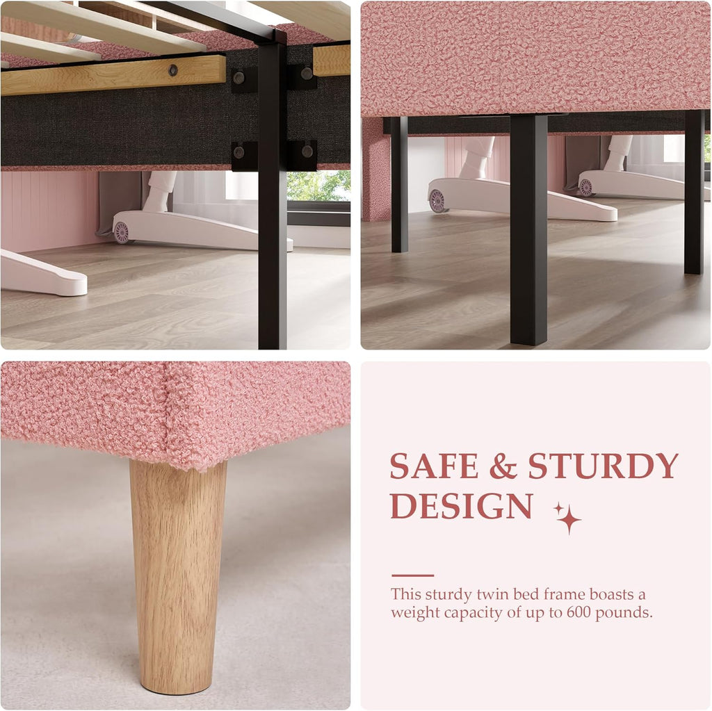 • **Premium Material**: Upholstered in soft faux shearling, the twin bed frame offers a cozy and plush feel, ensuring a comfortable and inviting sleeping space.